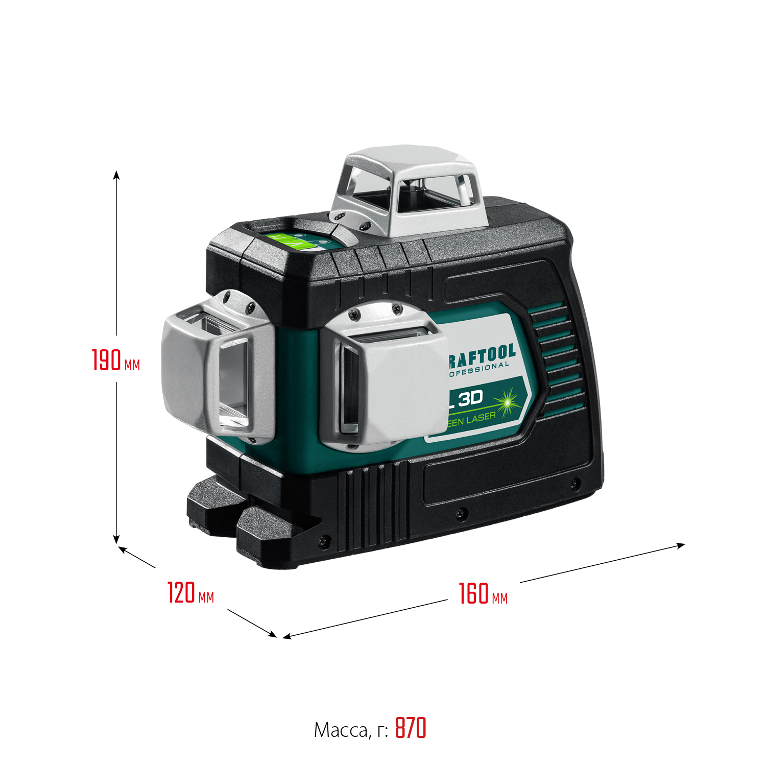 - 3 режима проецирования линий: горизонтальная и две вертикальные линии с развёрткой 360°, благодаря чему луч будет виден в любой точке.