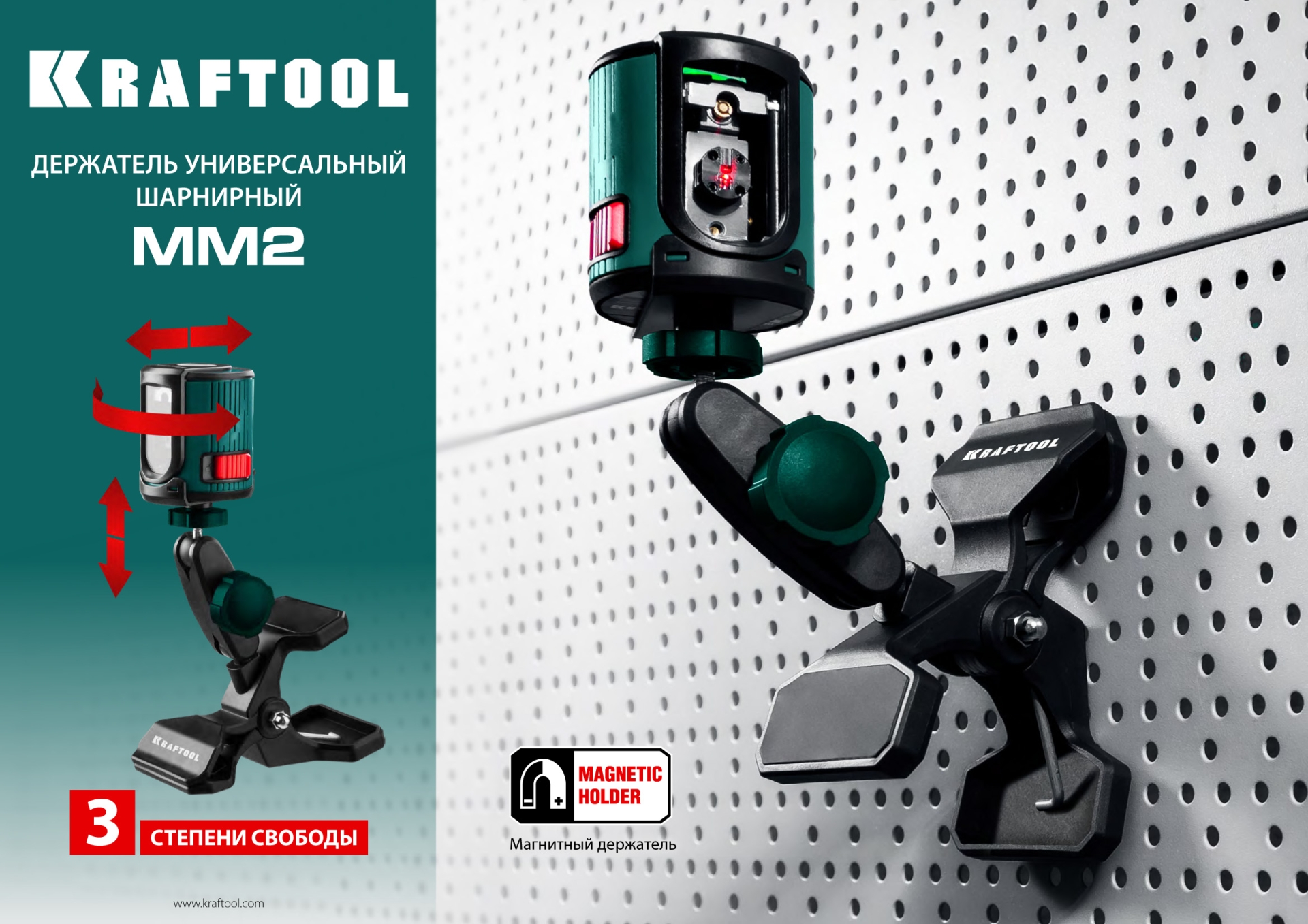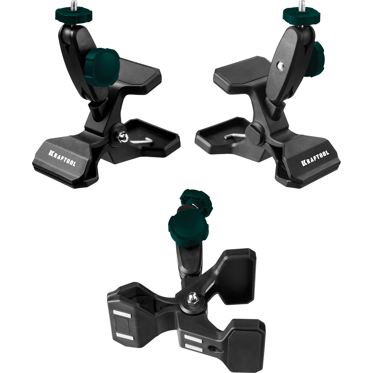 Профессиональный крепёжный элемент для лазерных устройств и цифровой техники с увеличенным диапазоном зажима. Оснащён поворотными шарнирами. Благодаря такой конструкции держатель крепится в разных местах и обеспечивает нужное направление лучей от прибора.