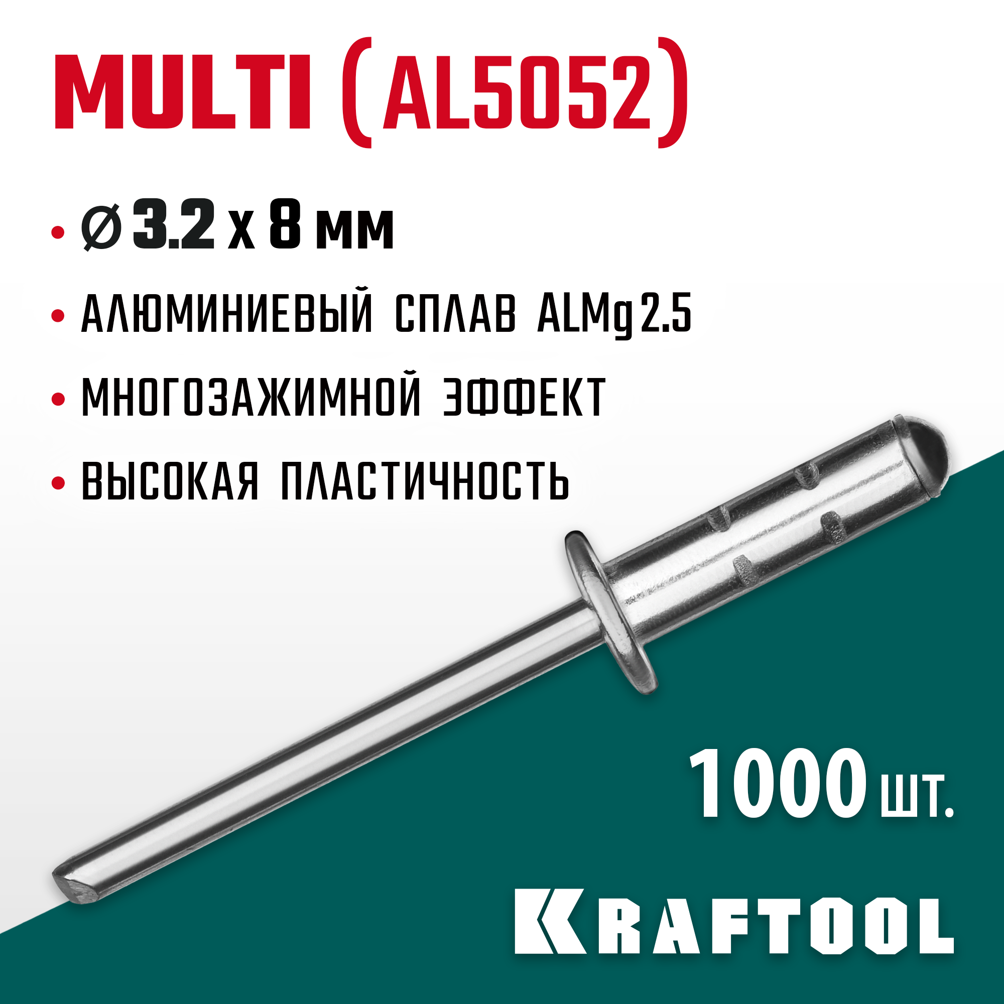 KRAFTOOL Multi (Al5052), 3.2 x 8 мм, 1000 шт, многозажимные алюминиевые заклепки (311702-32-08)
