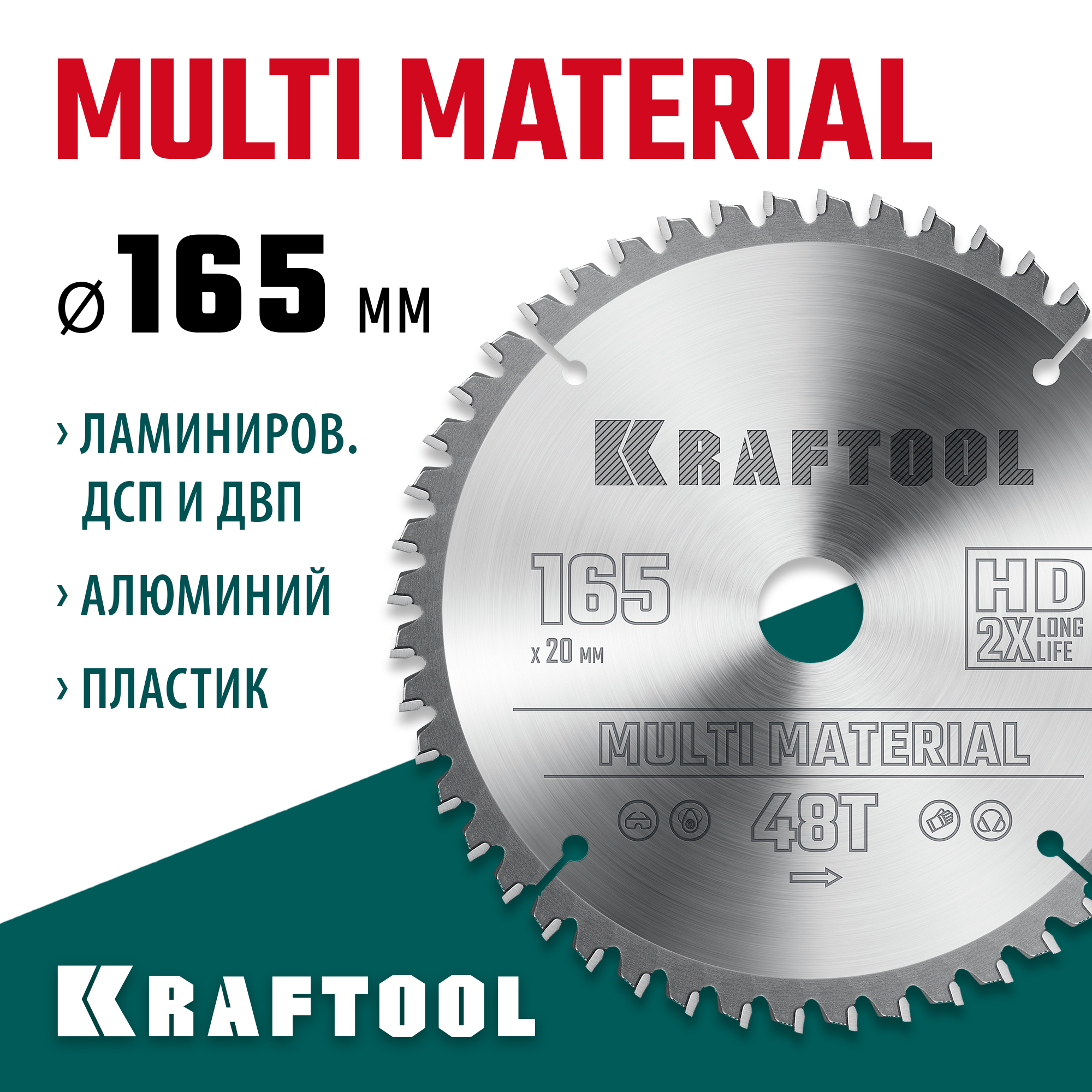 KRAFTOOL Multi Material, 165 x 20 мм, 48Т, пильный диск по алюминию (36953-165-20)