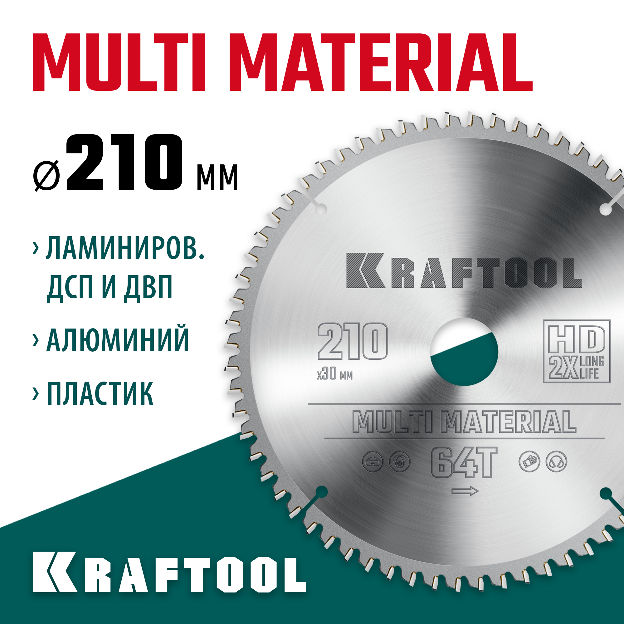 KRAFTOOL Multi Material, 210 х 30 мм, 64Т, пильный диск по алюминию (36953-210-30)