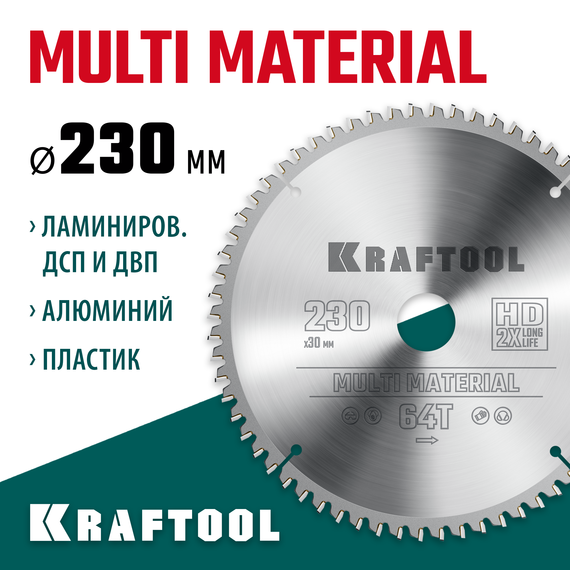 KRAFTOOL Multi Material, 230 х 30 мм, 64Т, пильный диск по алюминию (36953-230-30)