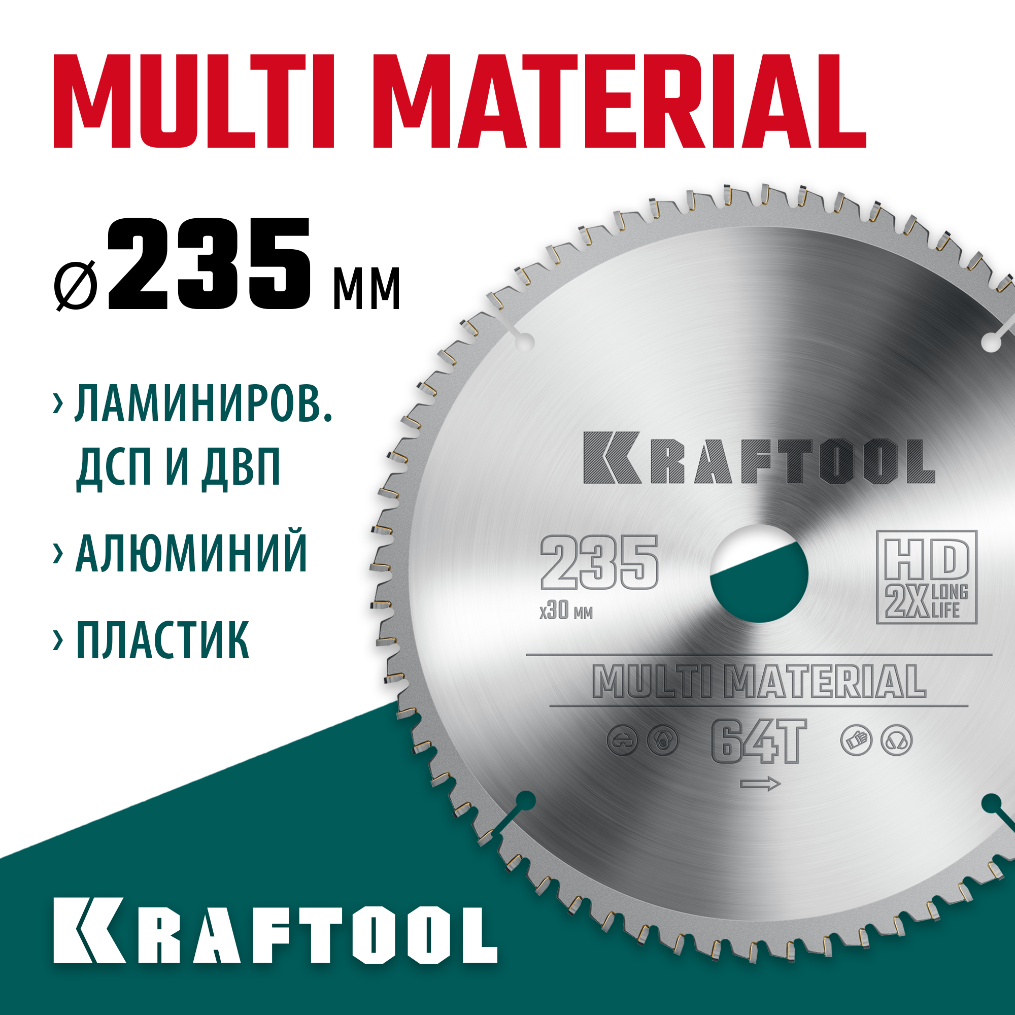 KRAFTOOL Multi Material, 235 х 30 мм, 64Т, пильный диск по алюминию (36953-235-30)