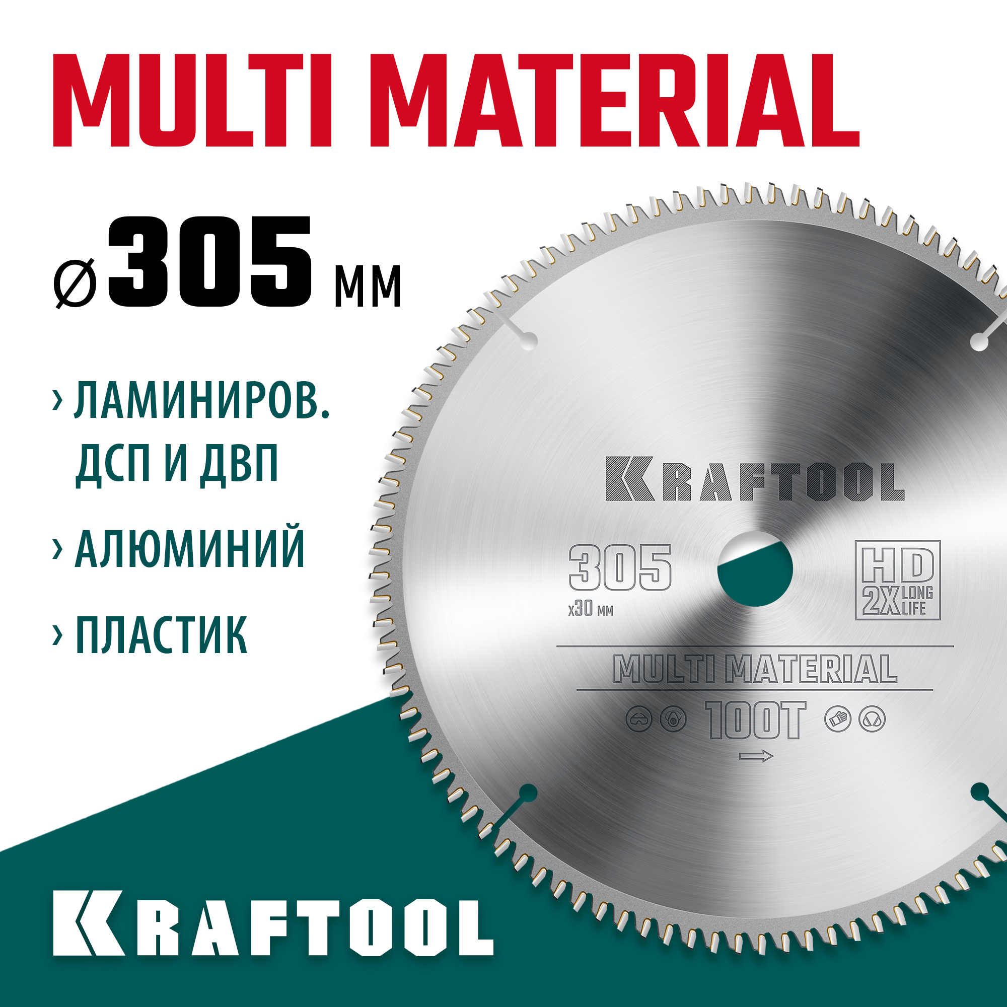 KRAFTOOL Multi Material, 305 х 30 мм, 100Т, пильный диск по алюминию (36953-305-30)