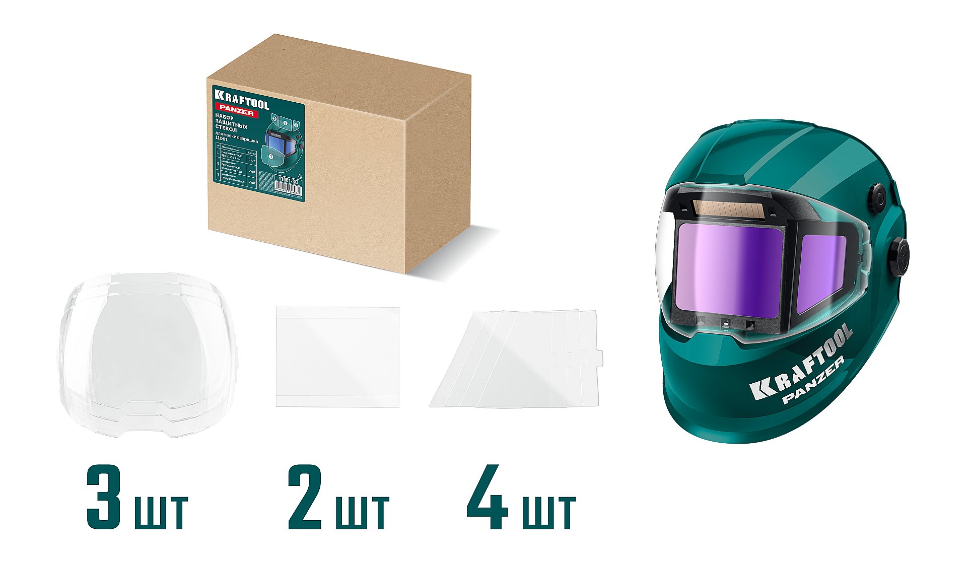 Служат запасными защитным стеклами для маски сварщика KRAFTOOL, модель 11061