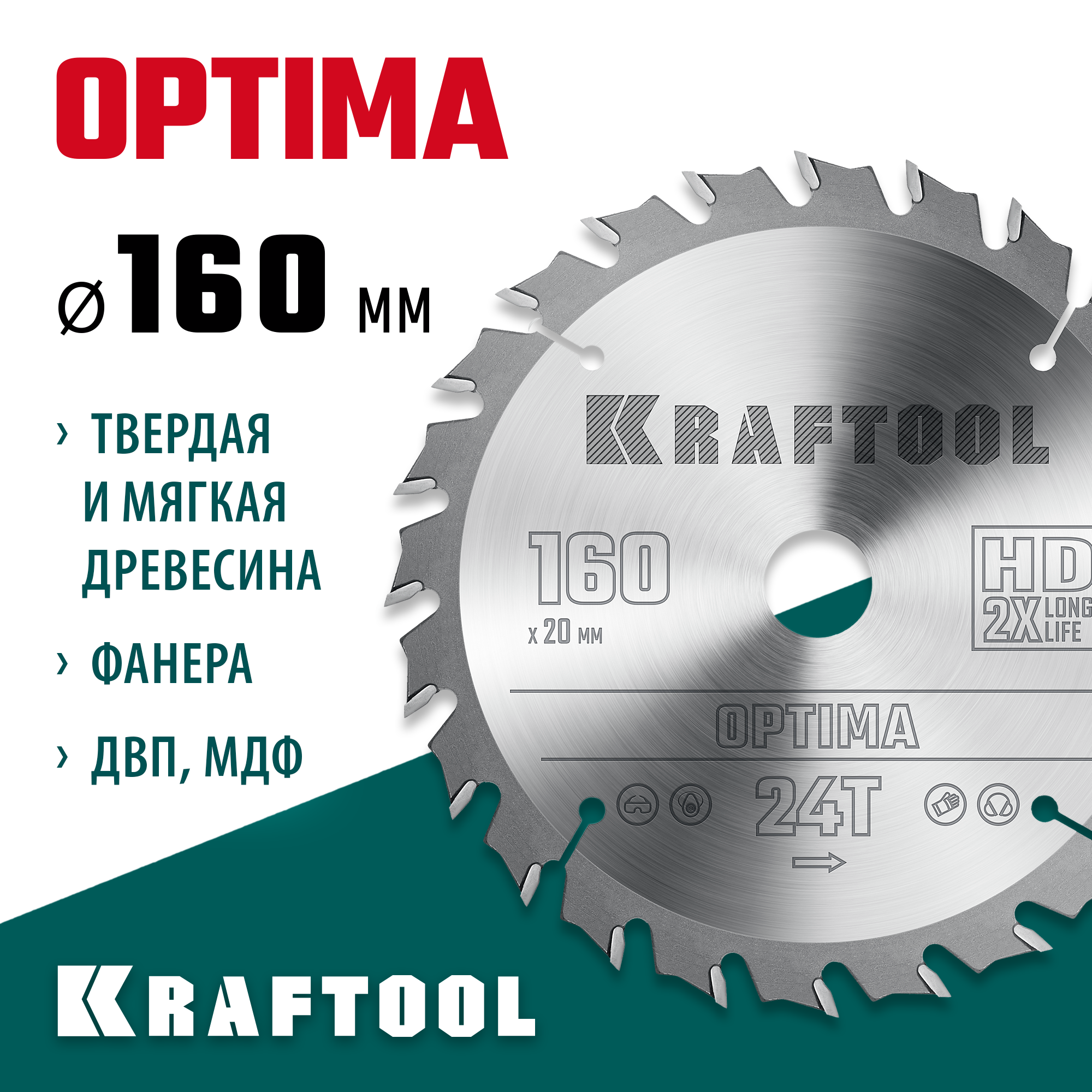 KRAFTOOL Optima, 160 х 20 мм, 24Т, пильный диск по дереву (36951-160-20)