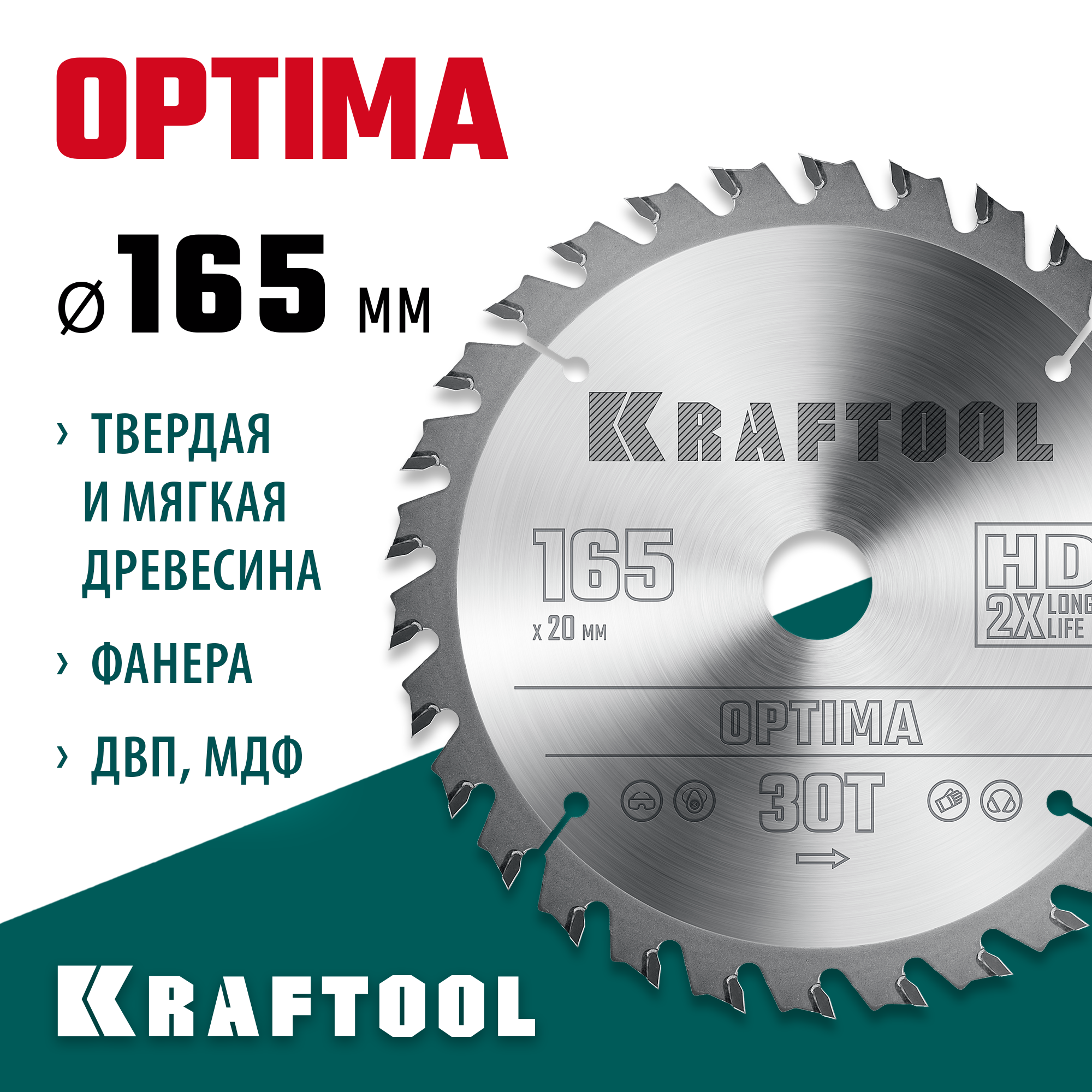 KRAFTOOL Optima, 165 х 20 мм, 30Т, пильный диск по дереву (36951-165-20)