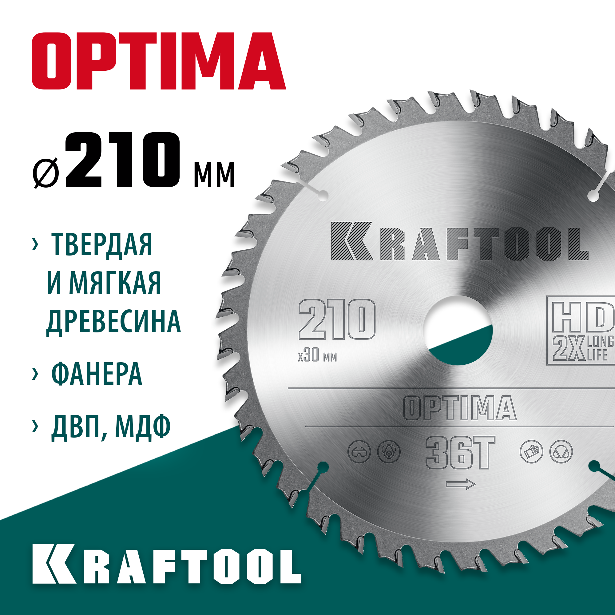 KRAFTOOL Optima, 210 х 30 мм, 36Т, пильный диск по дереву (36951-210-30)