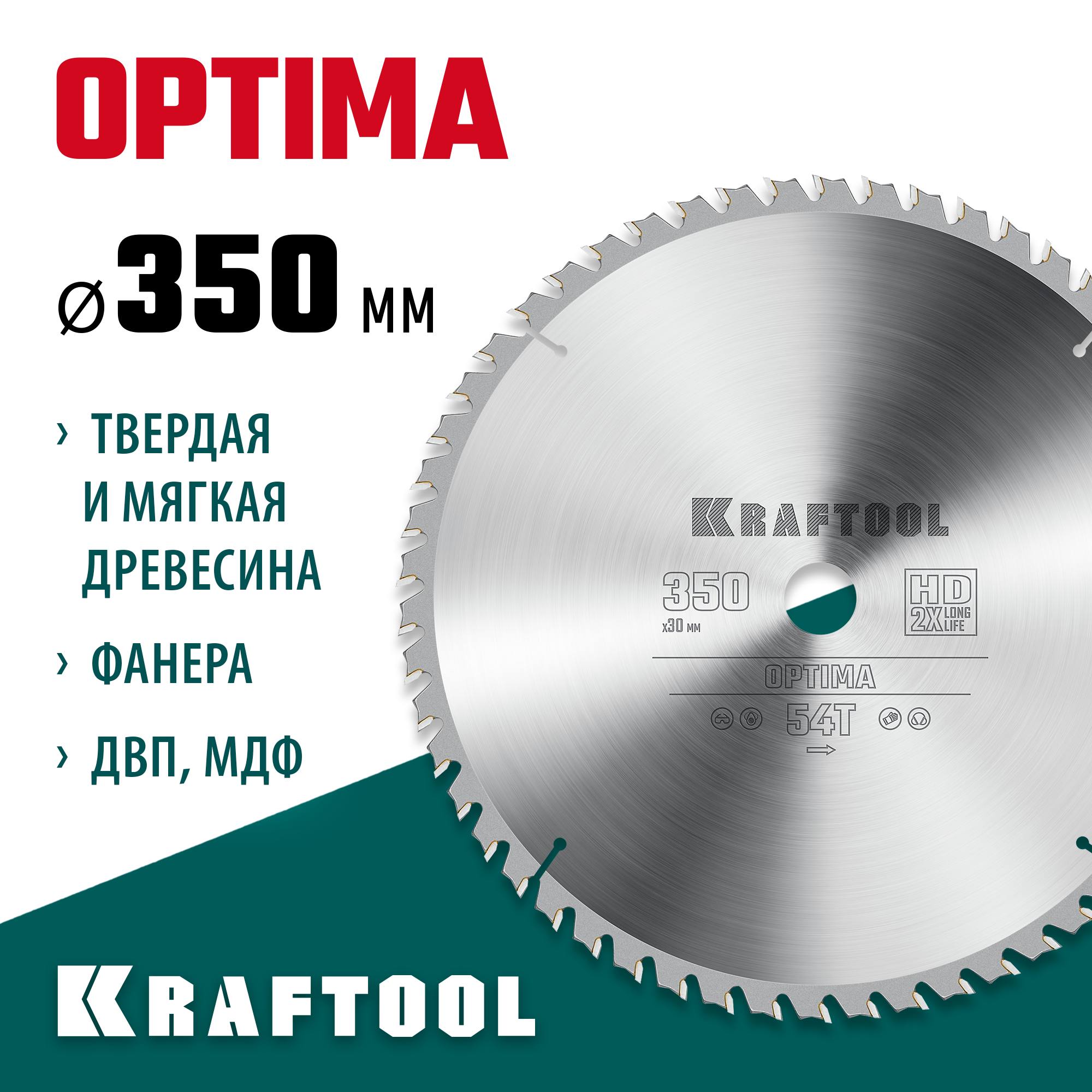 KRAFTOOL Optima, 350 х 30 мм, 54Т, пильный диск по дереву (36951-350-30)