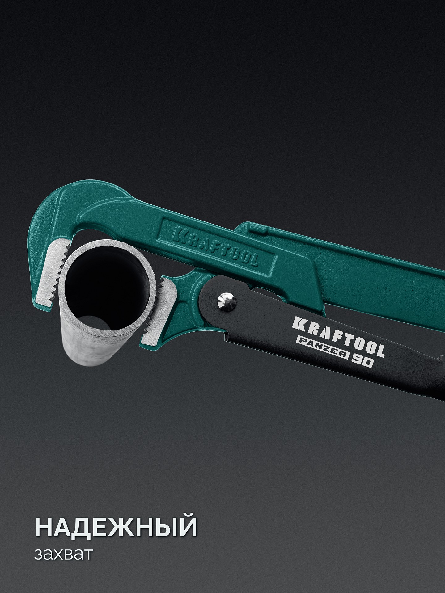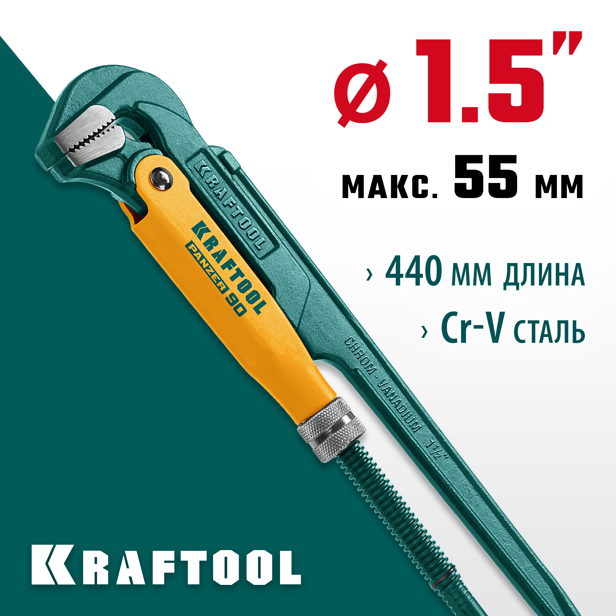 KRAFTOOL PANZER-90, №2, 1.5″, 440 мм, трубный ключ с прямыми губками (2734-15)