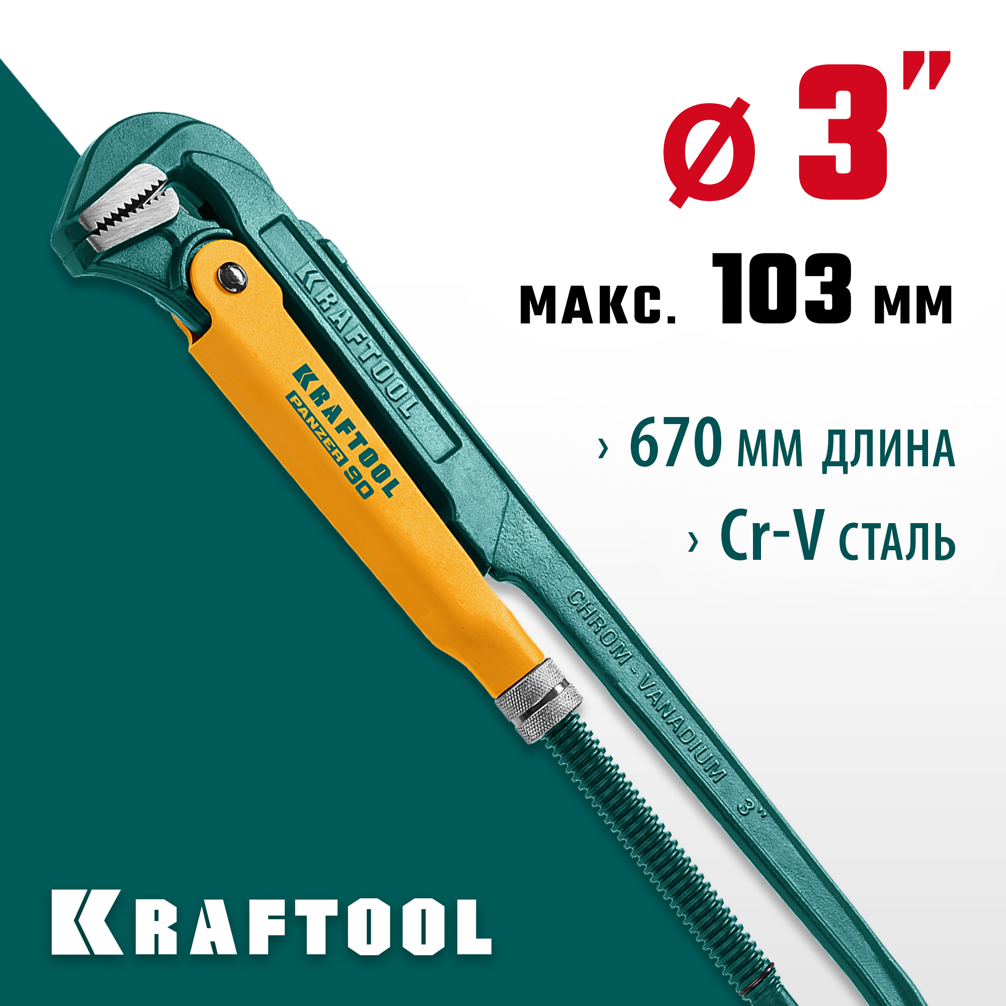 KRAFTOOL PANZER-90, №4, 3″, 670 мм, трубный ключ с прямыми губками (2734-30)