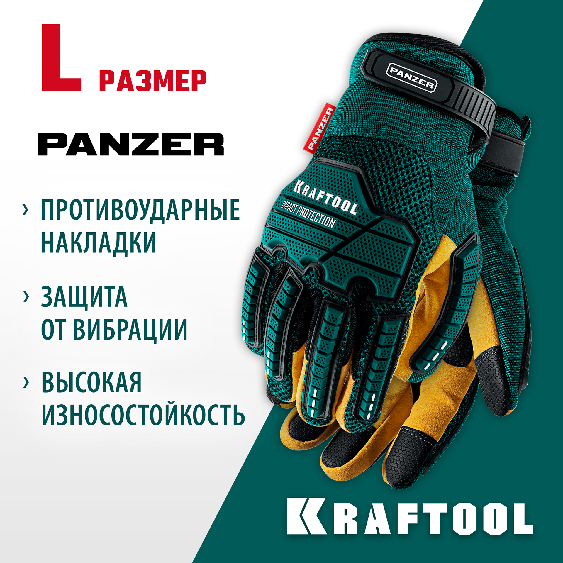 KRAFTOOL PANZER р.L (9), профессиональные комбинированные перчатки, виброзащита, увеличенные противоударные накладки (11298-L)