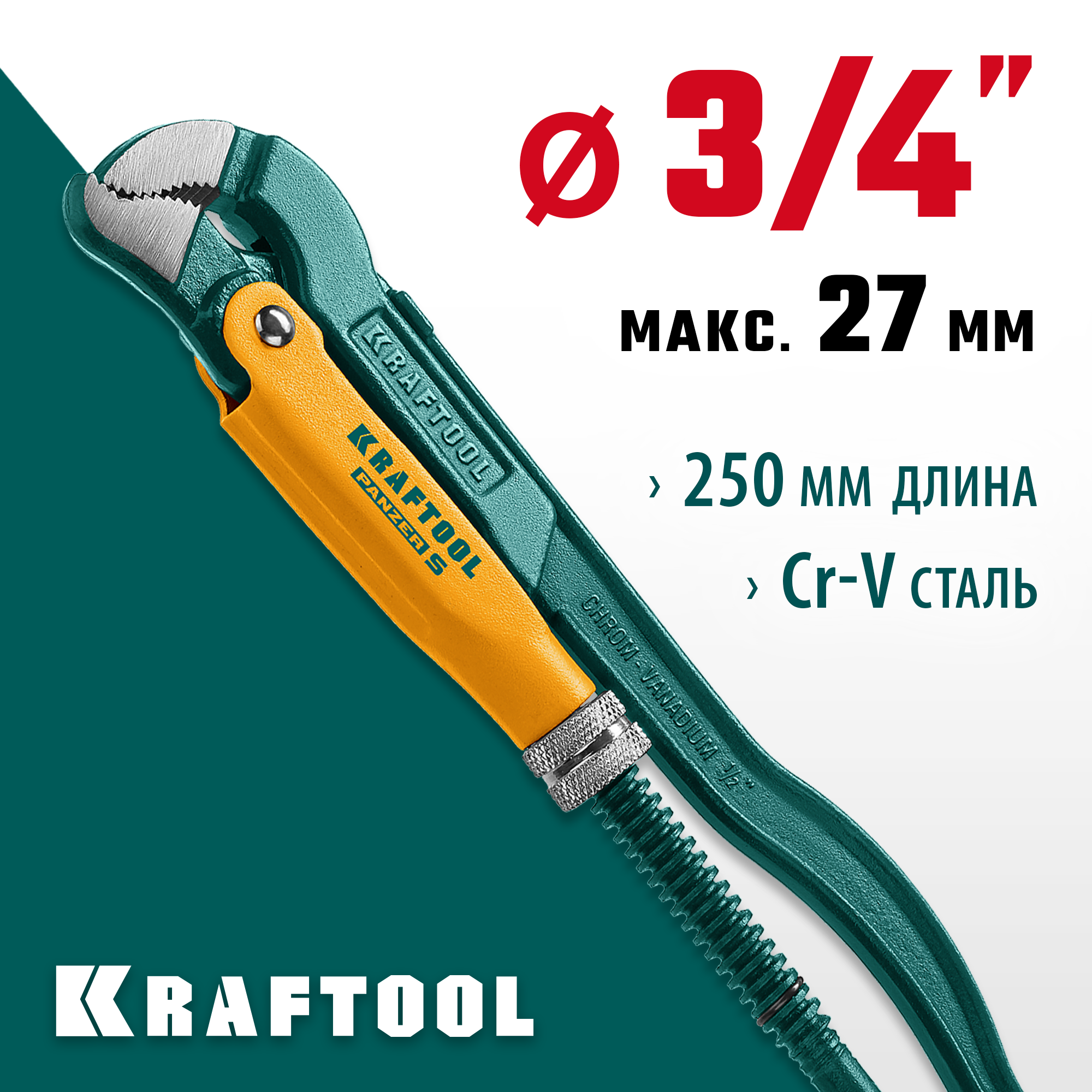 KRAFTOOL PANZER-S, №0, 1/2″, 240 мм, трубный ключ с изогнутыми губками (2733-05)