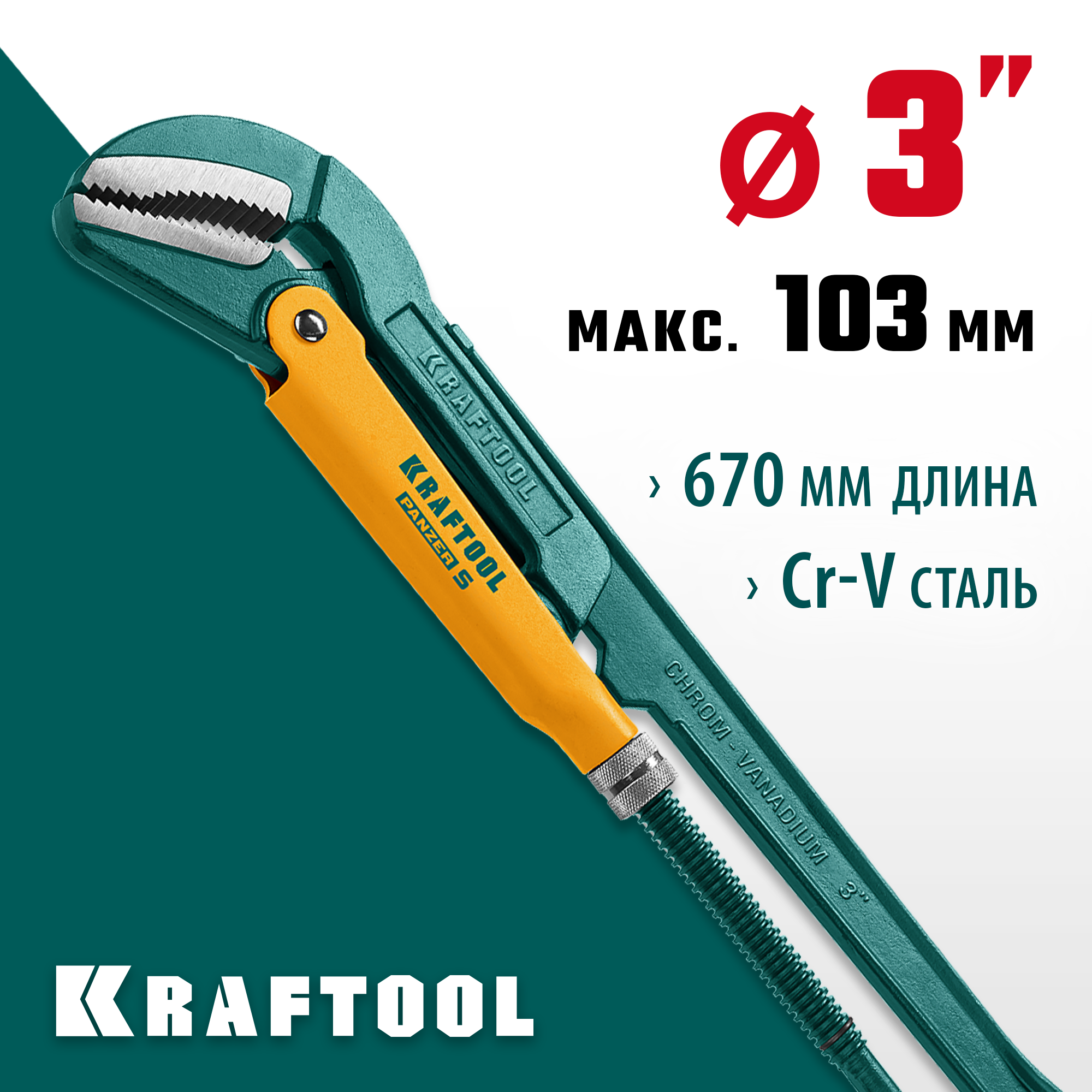 KRAFTOOL PANZER-S, №4, 3″, 670 мм, трубный ключ с изогнутыми губками (2733-30)