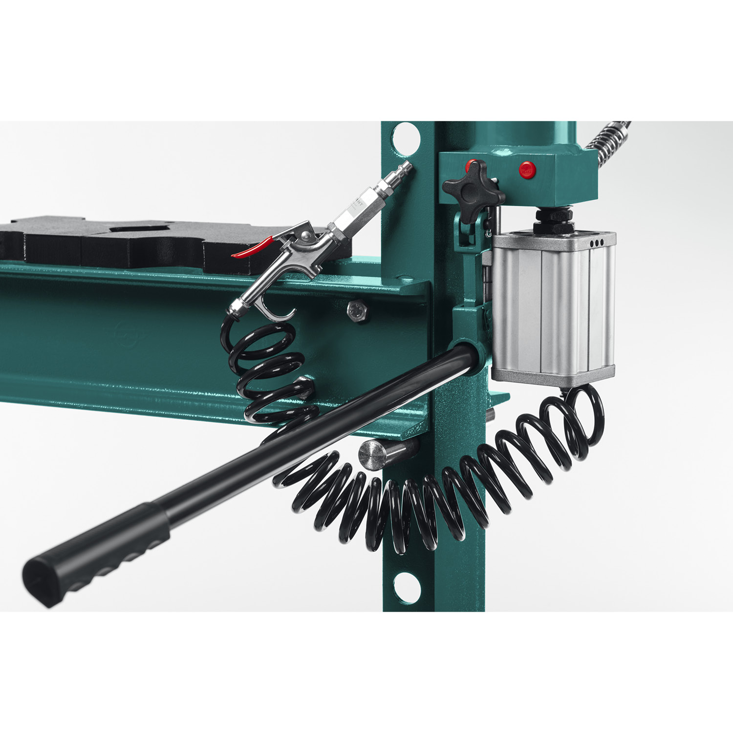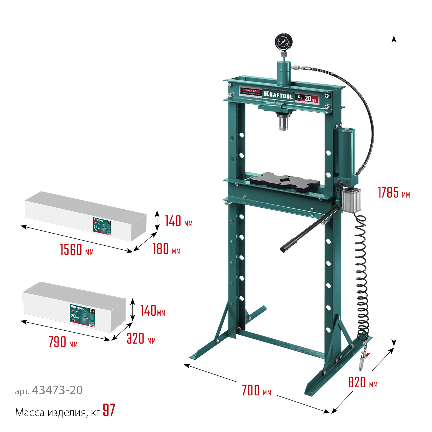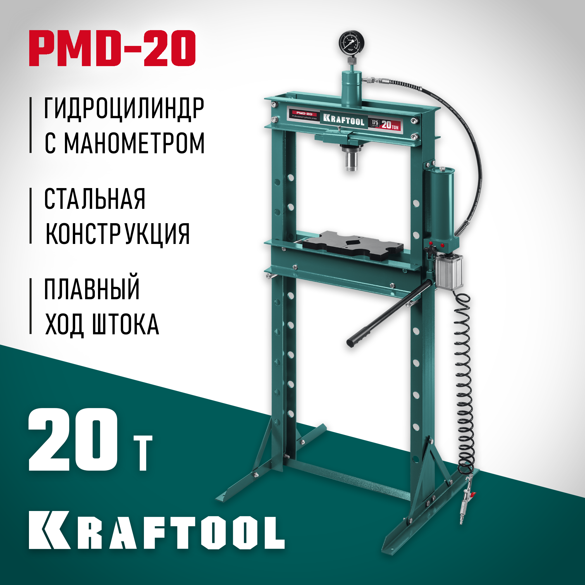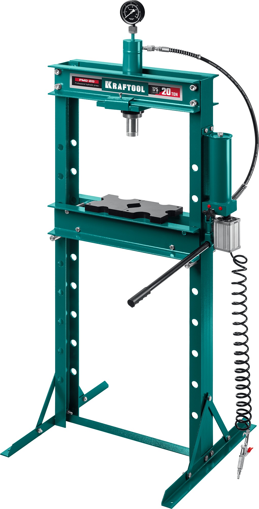 Пресс KRAFTOOL - мощный инструмент для запрессовки деталей. Отличается прочной металлической конструкцией. Широкое Н-образное основание надежно крепится к полу анкерными болтами. Манометр для контроля давления. Пневматический привод снижает отгрузку на оператора.