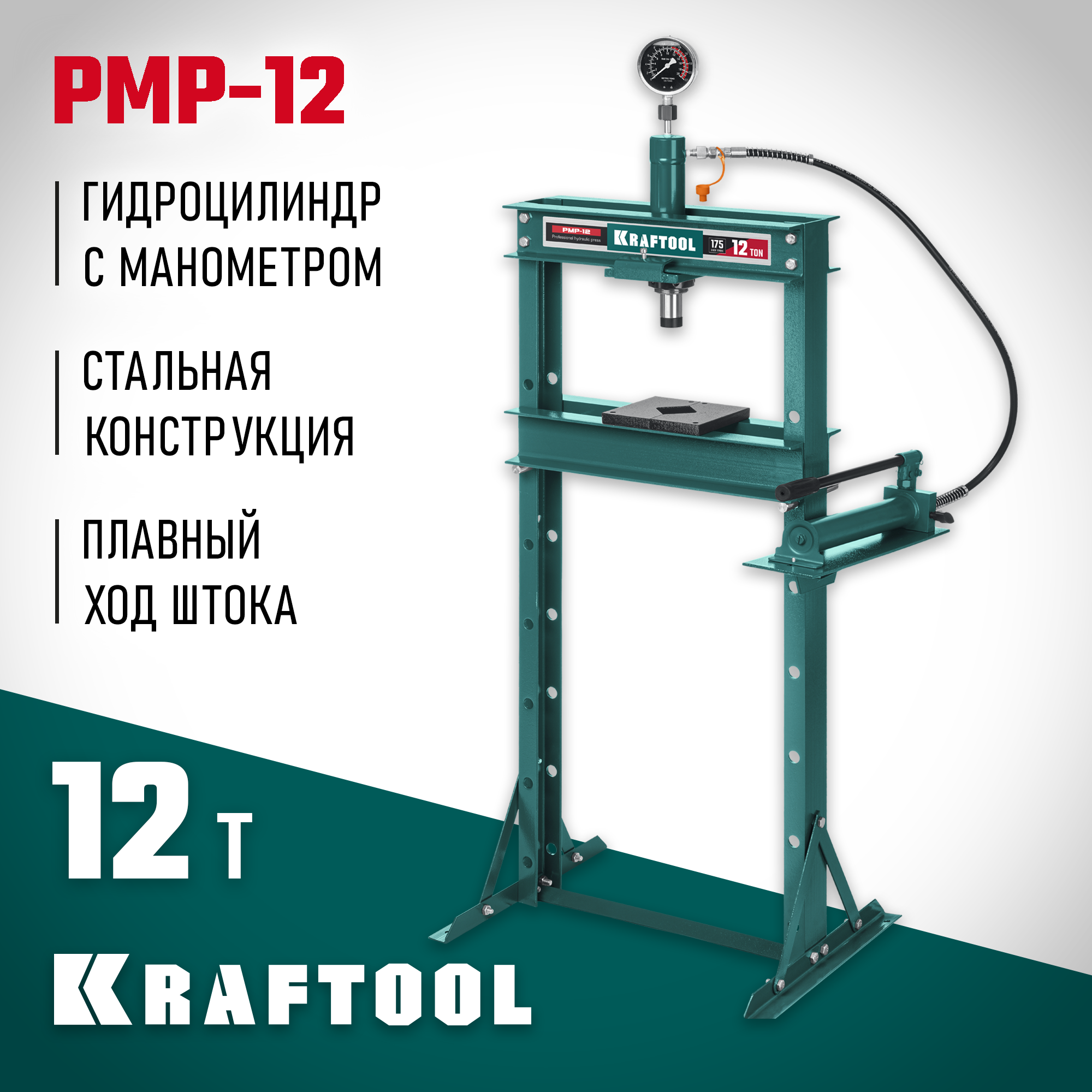 Пресс KRAFTOOL - мощный инструмент для запрессовки деталей. Отличается прочной металлической конструкцией. Широкое Н-образное основание надежно крепится к полу анкерными болтами. Большой рабочий диапазон. Манометр для контроля давления