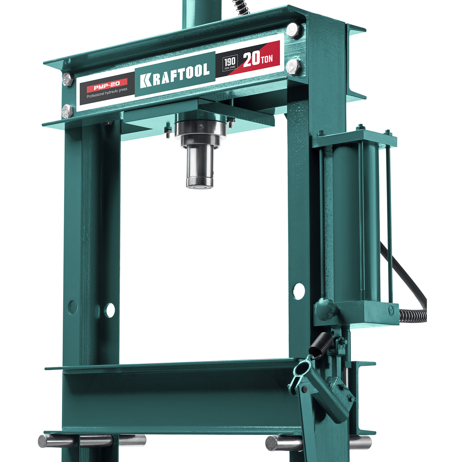 Пресс KRAFTOOL - мощный инструмент для запрессовки деталей. Отличается прочной металлической конструкцией. Широкое Н-образное основание надежно крепится к полу анкерными болтами. Большой рабочий диапазон. Манометр для контроля давления