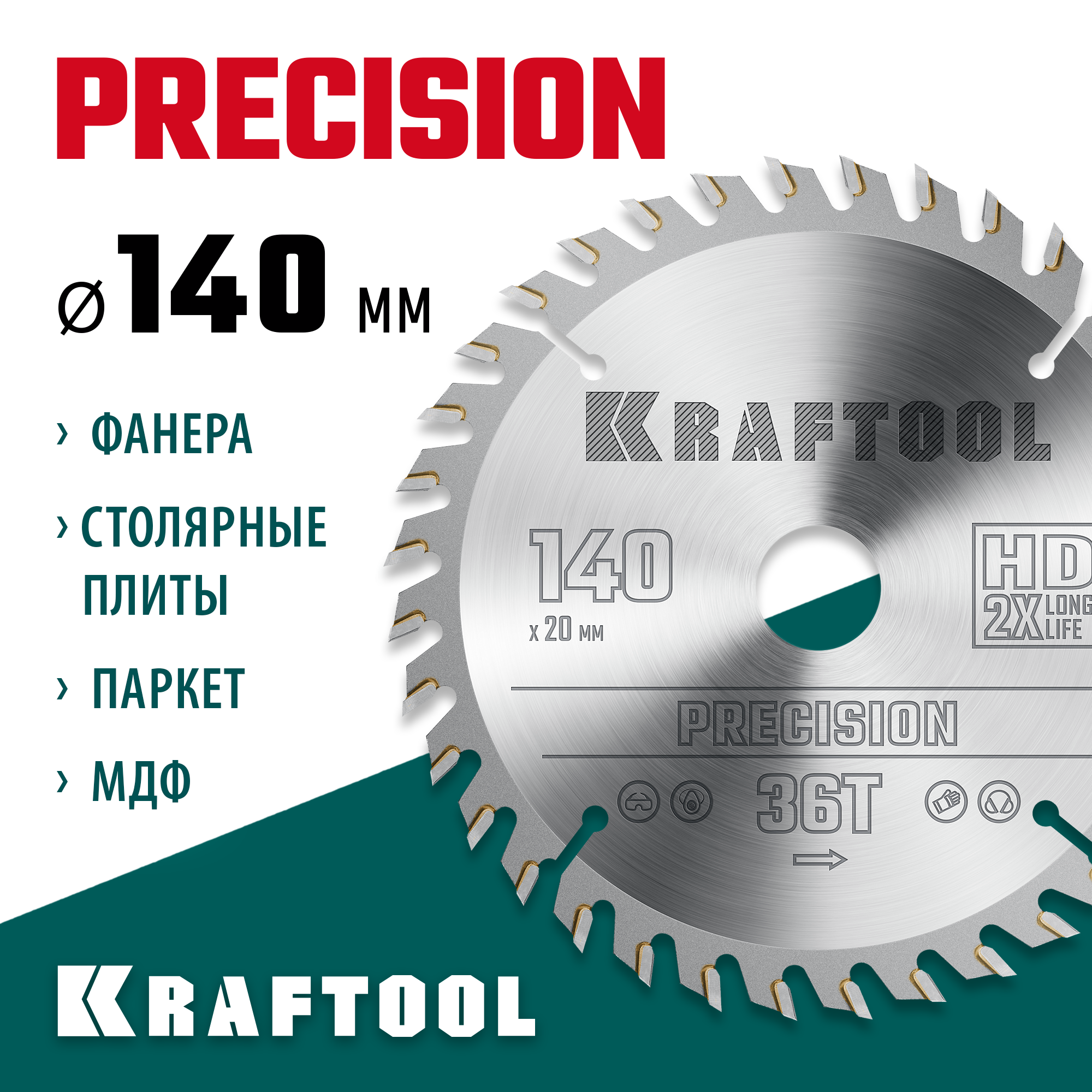 KRAFTOOL Precision, 140 х 20 мм, 36Т, пильный диск по дереву (36952-140-20)