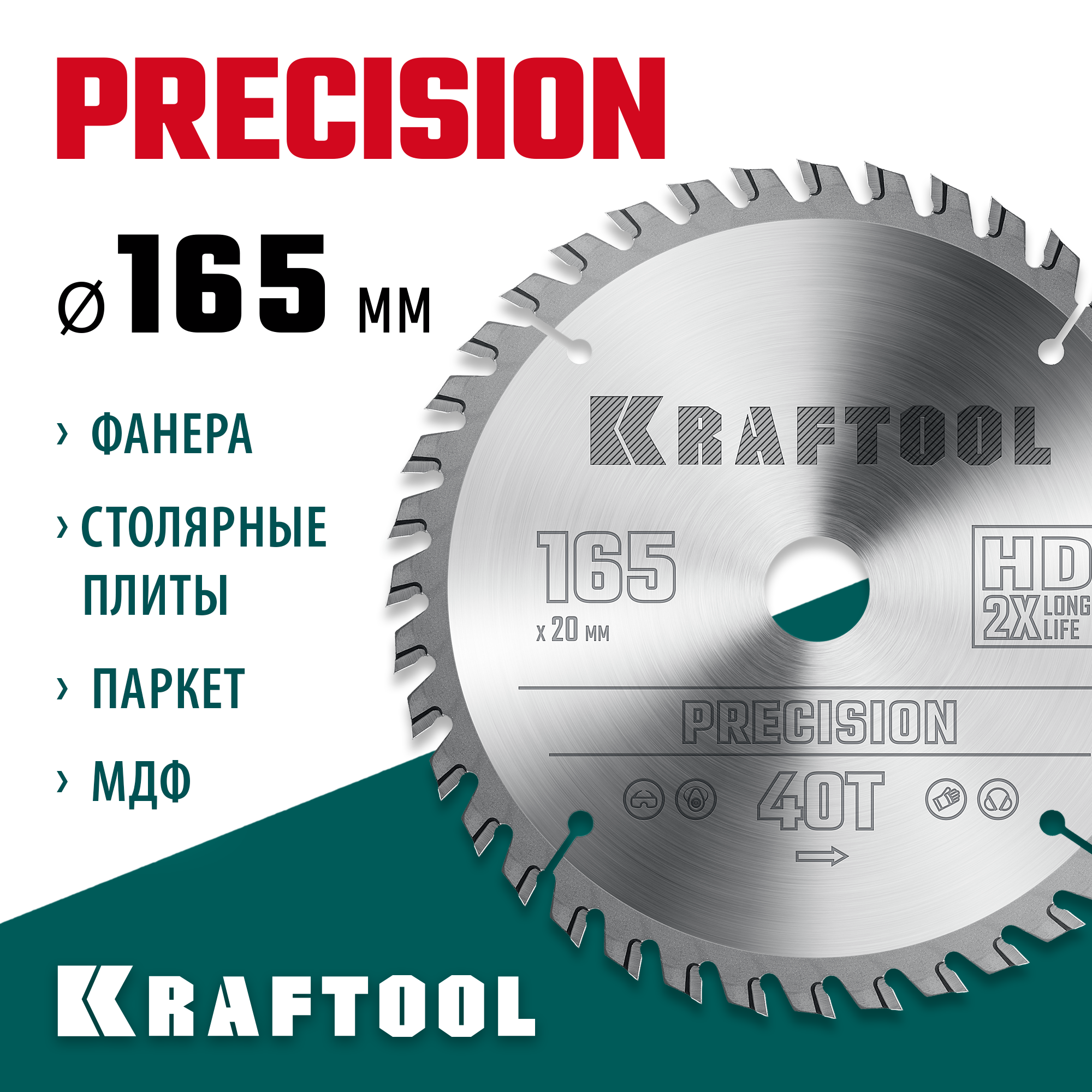 KRAFTOOL Precision, 165 х 20 мм, 40Т, пильный диск по дереву (36952-165-20)