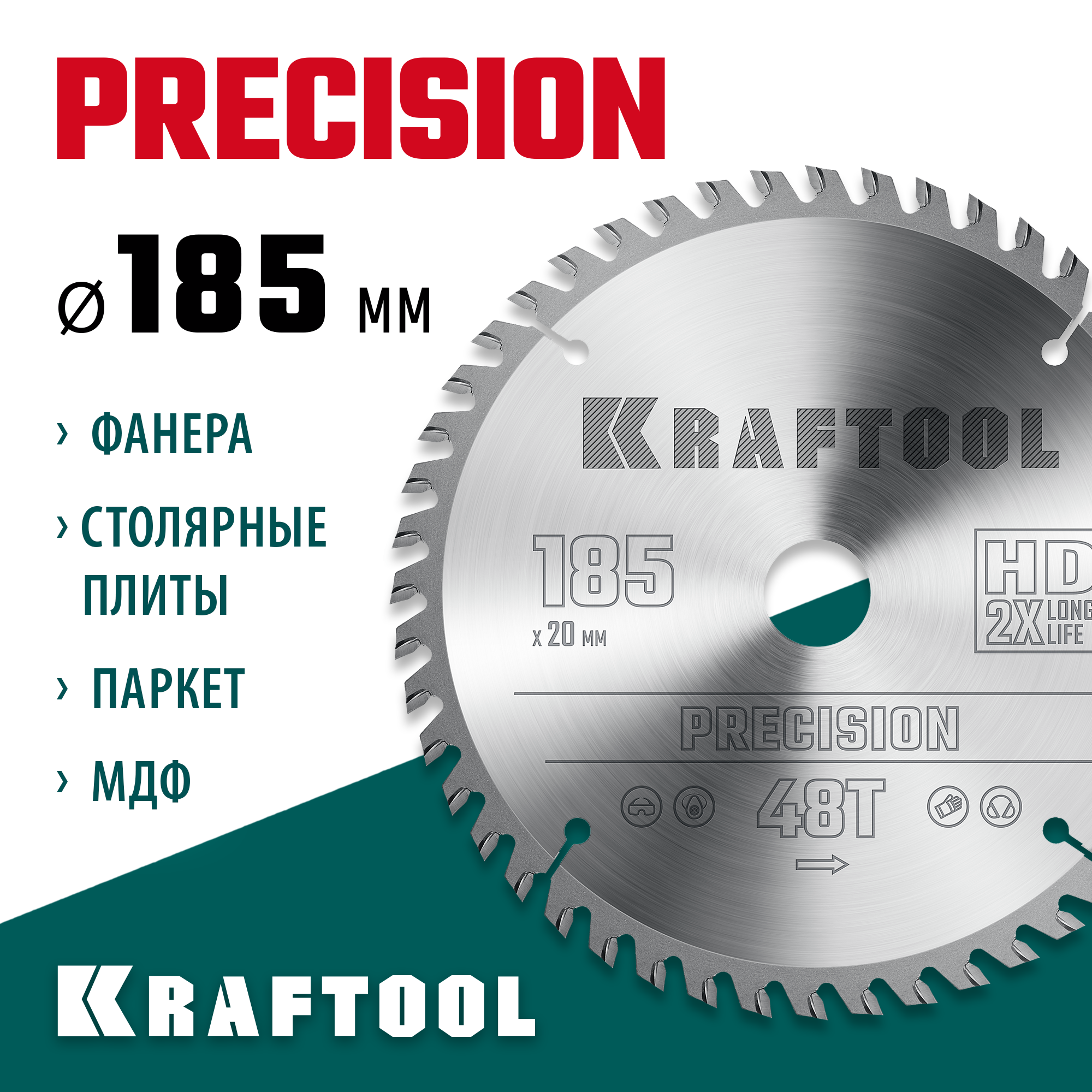 KRAFTOOL Precision, 185 x 20 мм, 48Т, пильный диск по дереву (36952-185-20)