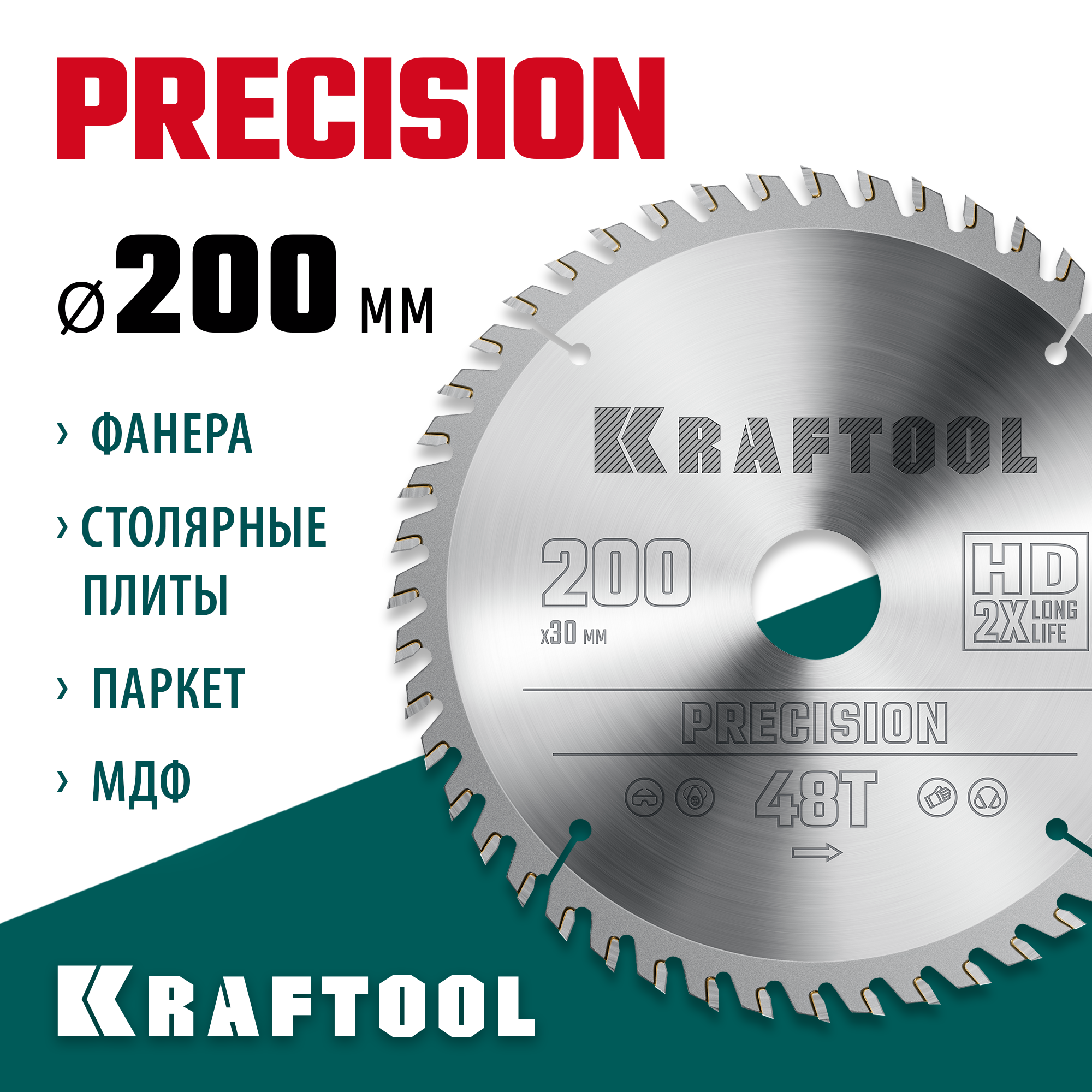 KRAFTOOL Precision, 200 х 30 мм, 48Т, пильный диск по дереву (36952-200-30)