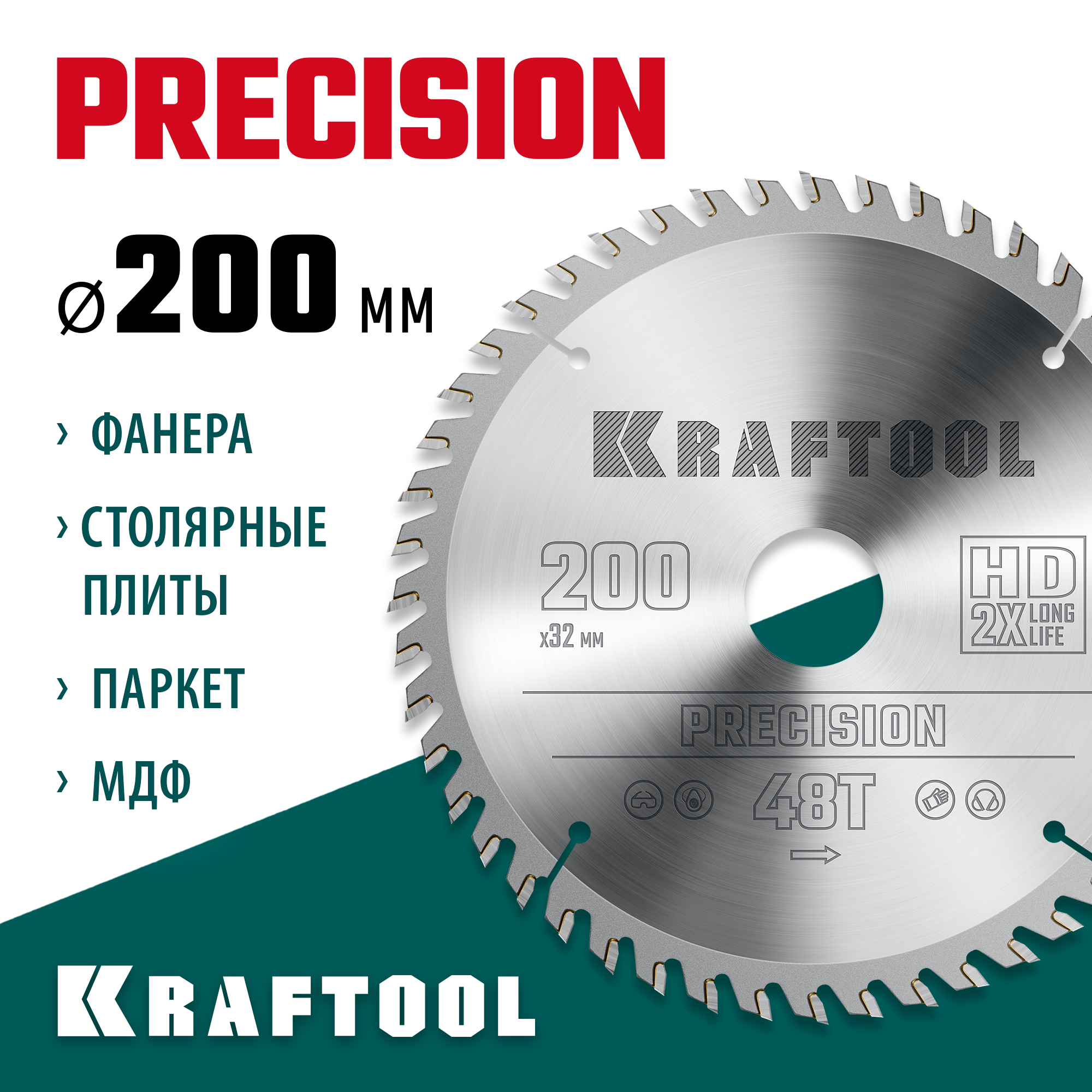 KRAFTOOL Precision, 200 х 32 мм, 48Т, пильный диск по дереву (36952-200-32)