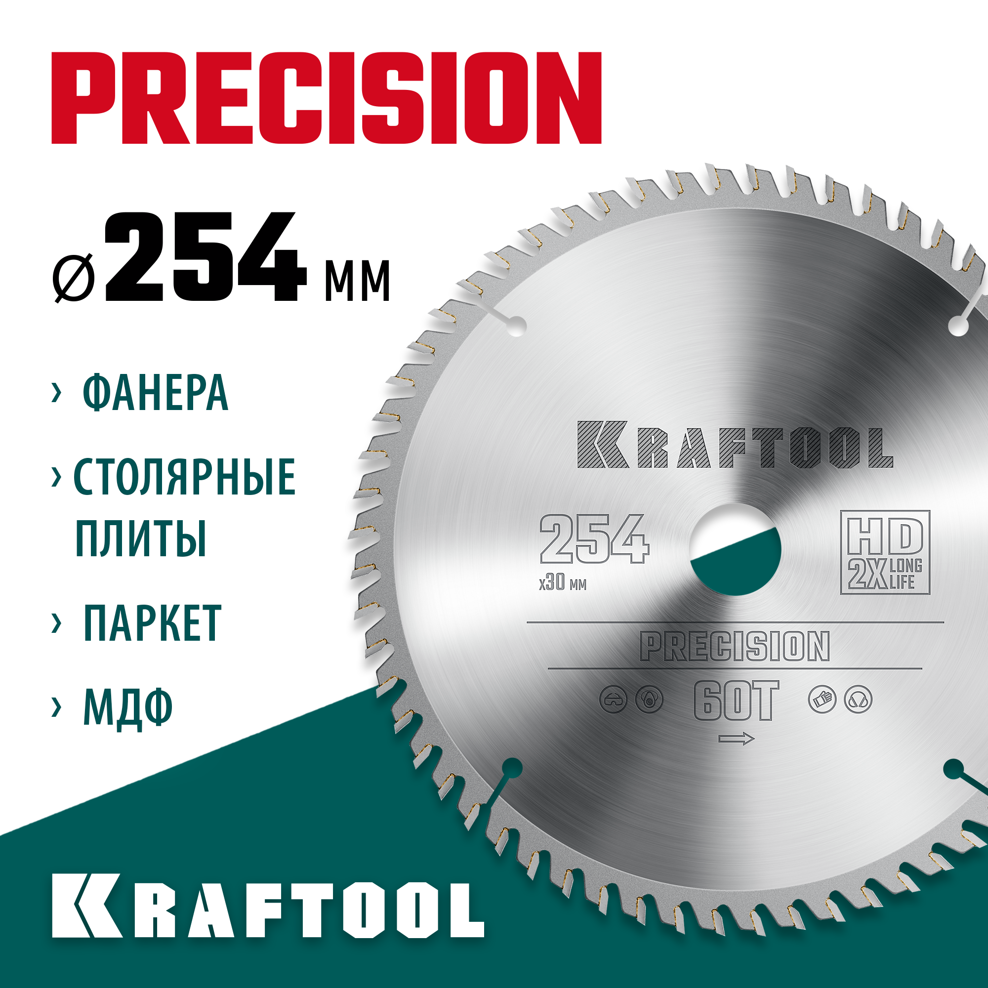 KRAFTOOL Precision, 254 х 30 мм, 60Т, пильный диск по дереву (36952-254-30)
