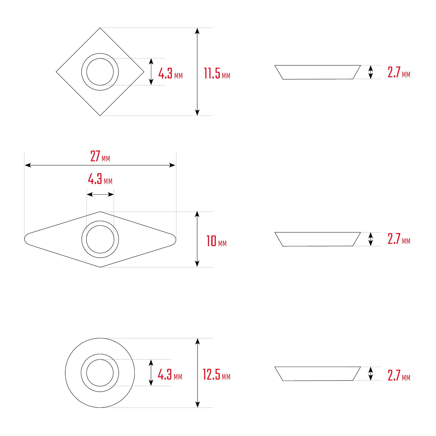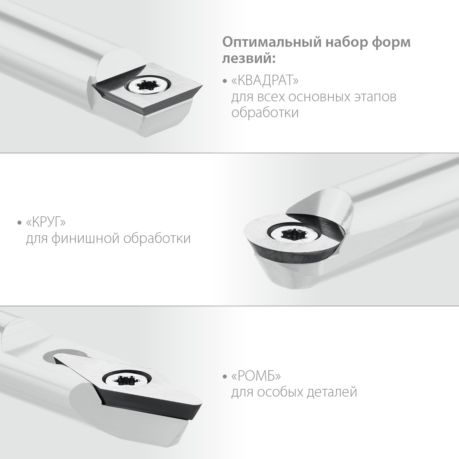 - Универсальность использования благодаря лезвиям круглой, квадратной и ромбической формы