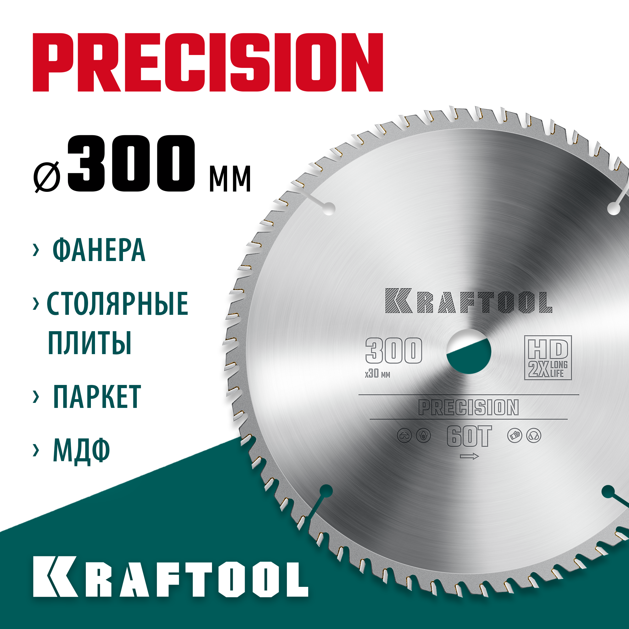 KRAFTOOL Precision, 300 х 30 мм, 60Т, пильный диск по дереву (36952-300-30)