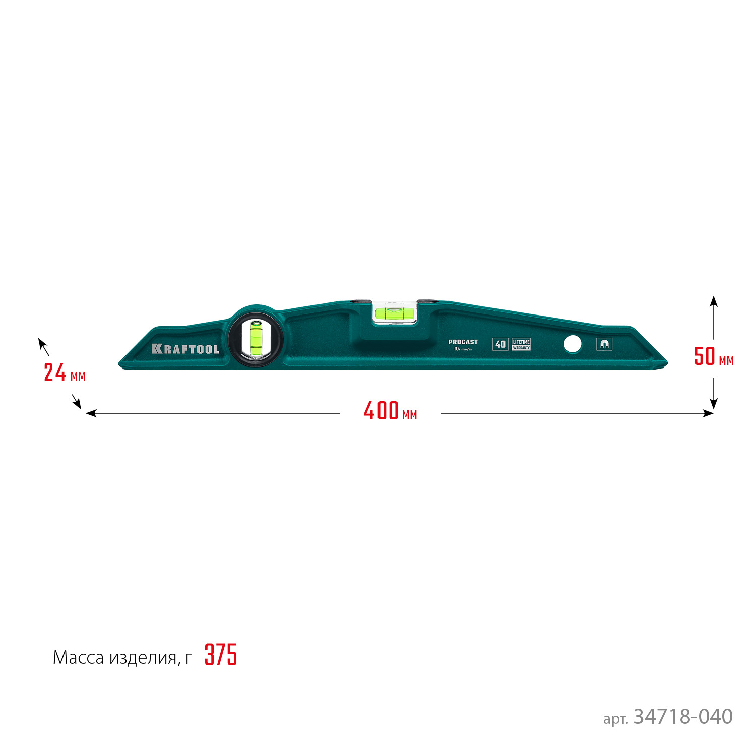 KRAFTOOL PROCAST-M, 400 мм, магнитный литой уровень (34718-040)