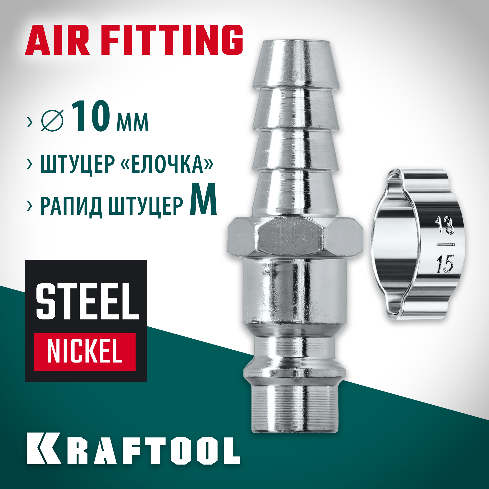 KRAFTOOL штуцер ″елочка″, 10 мм - рапид штуцер, с хомутом, переходник (06597-10)
