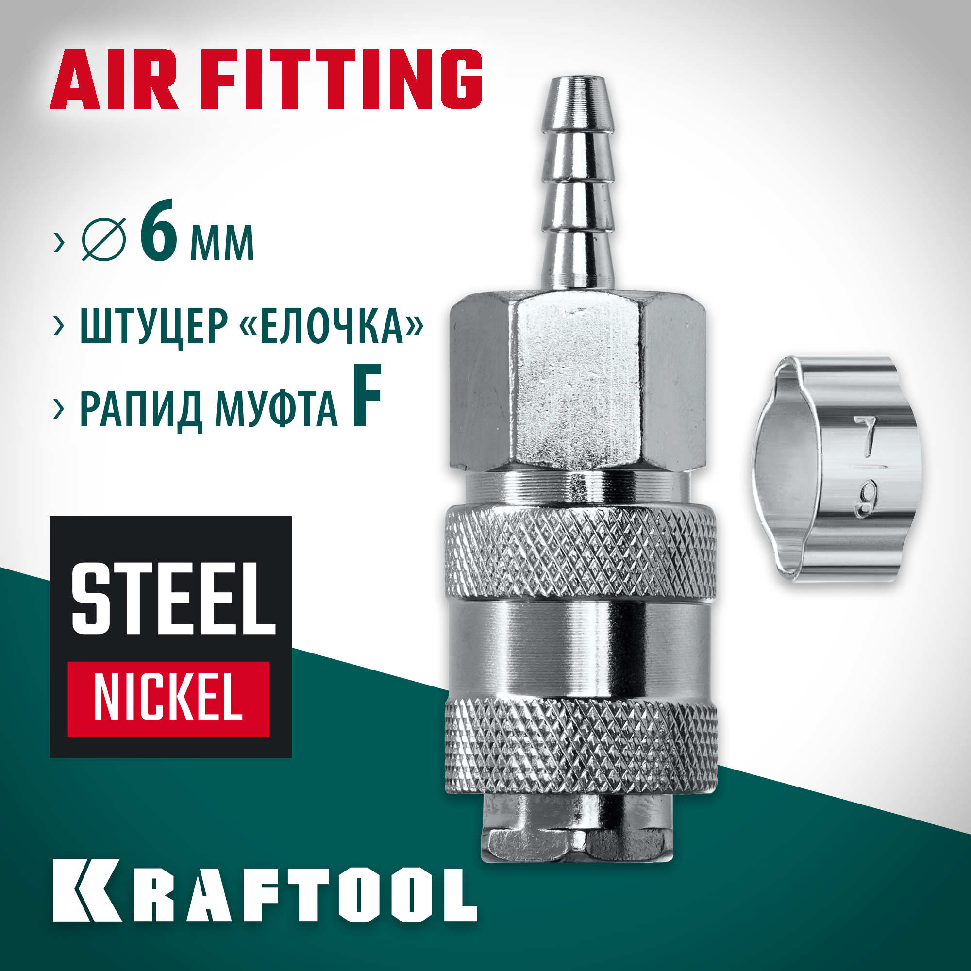 KRAFTOOL штуцер ″елочка″, 6 мм - рапид муфта, с хомутом, переходник (06596-06)