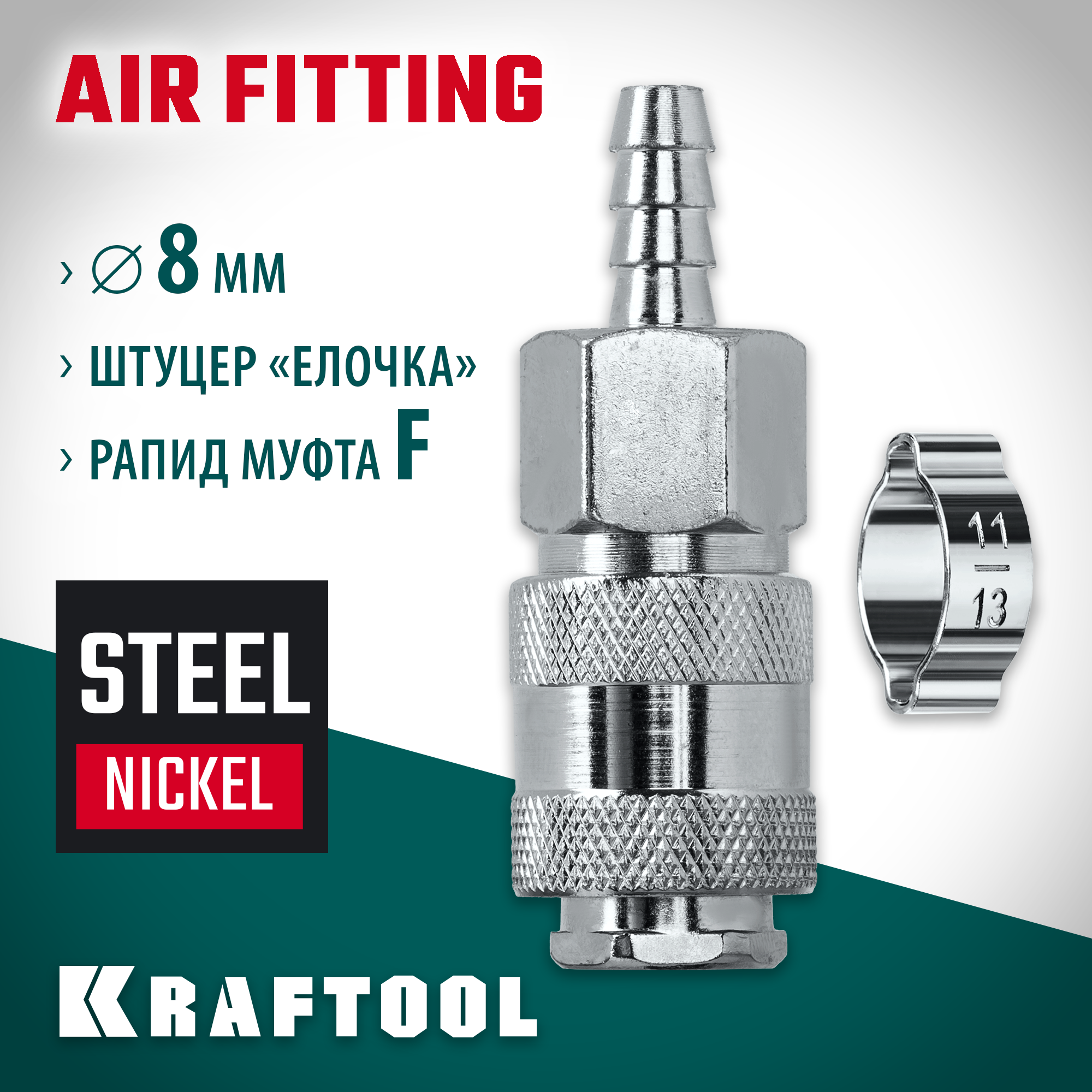 KRAFTOOL штуцер ″елочка″, 8 мм - рапид муфта, с хомутом, переходник (06596-08)
