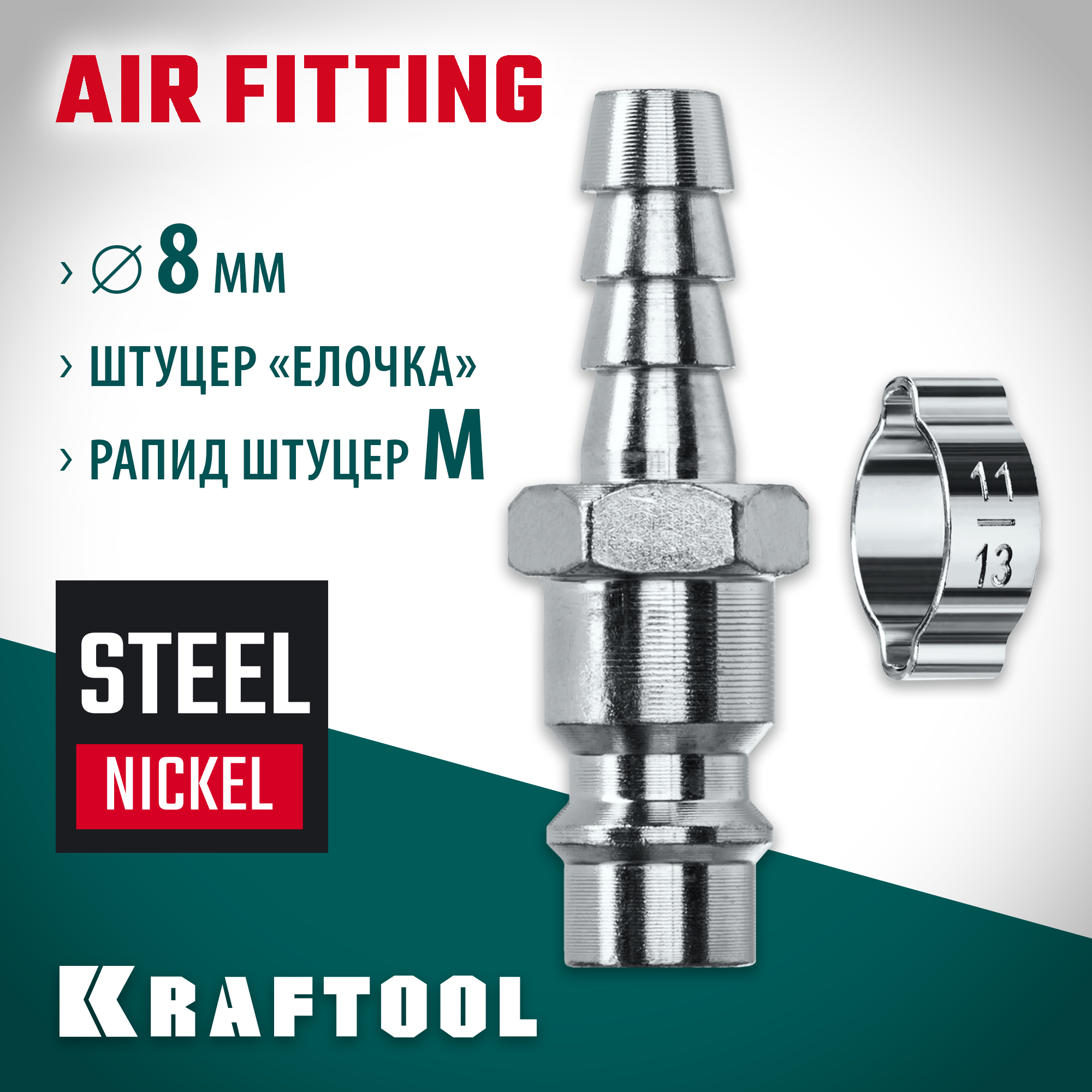 KRAFTOOL штуцер ″елочка″, 8 мм - рапид штуцер, с хомутом, переходник (06597-08)