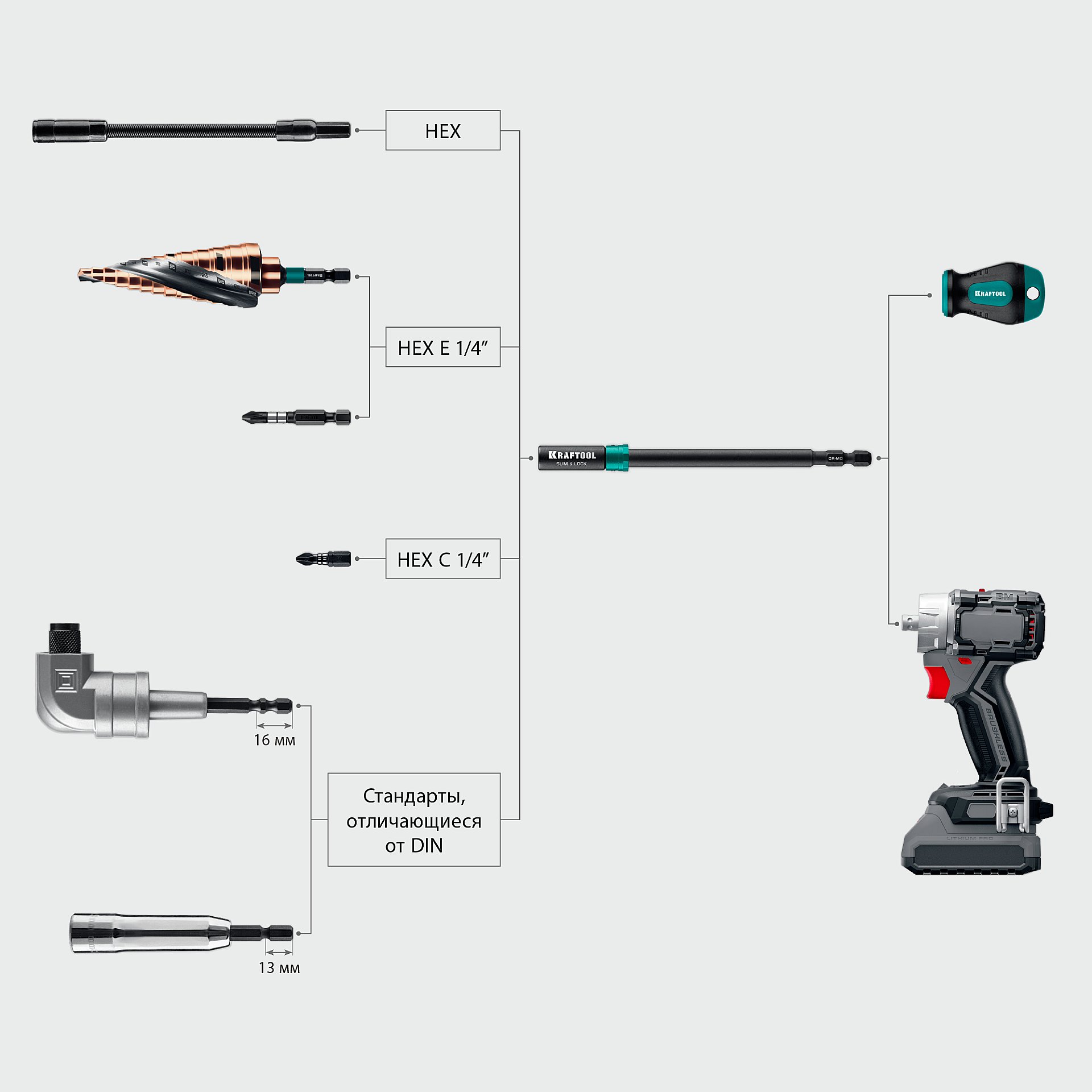 KRAFTOOL SLIM & LOCK, 140 мм, быстросъемный ударный адаптер для шуруповертов (26783-150)