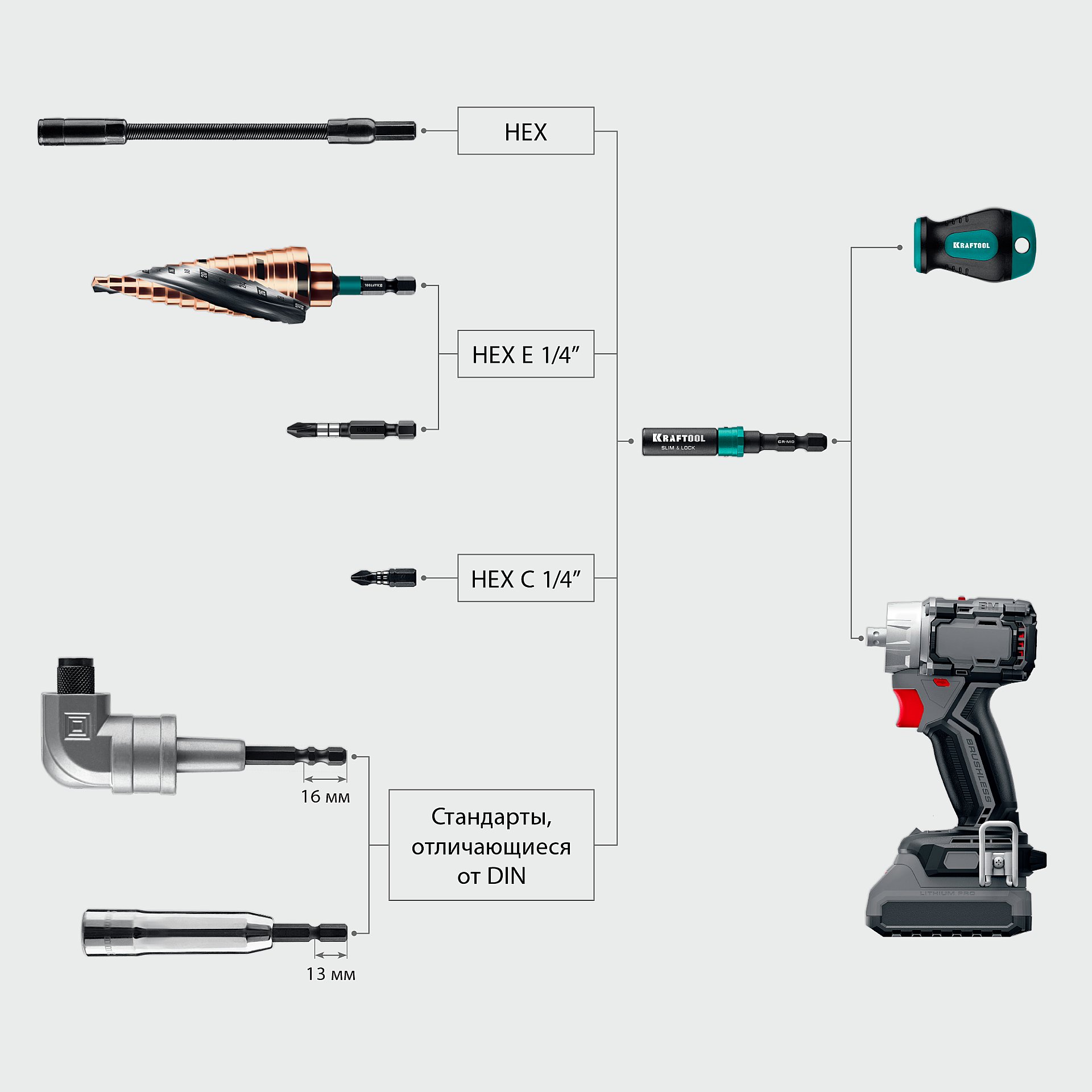 - Torsion - торсионная зона для защиты крепежа и бит от слома.