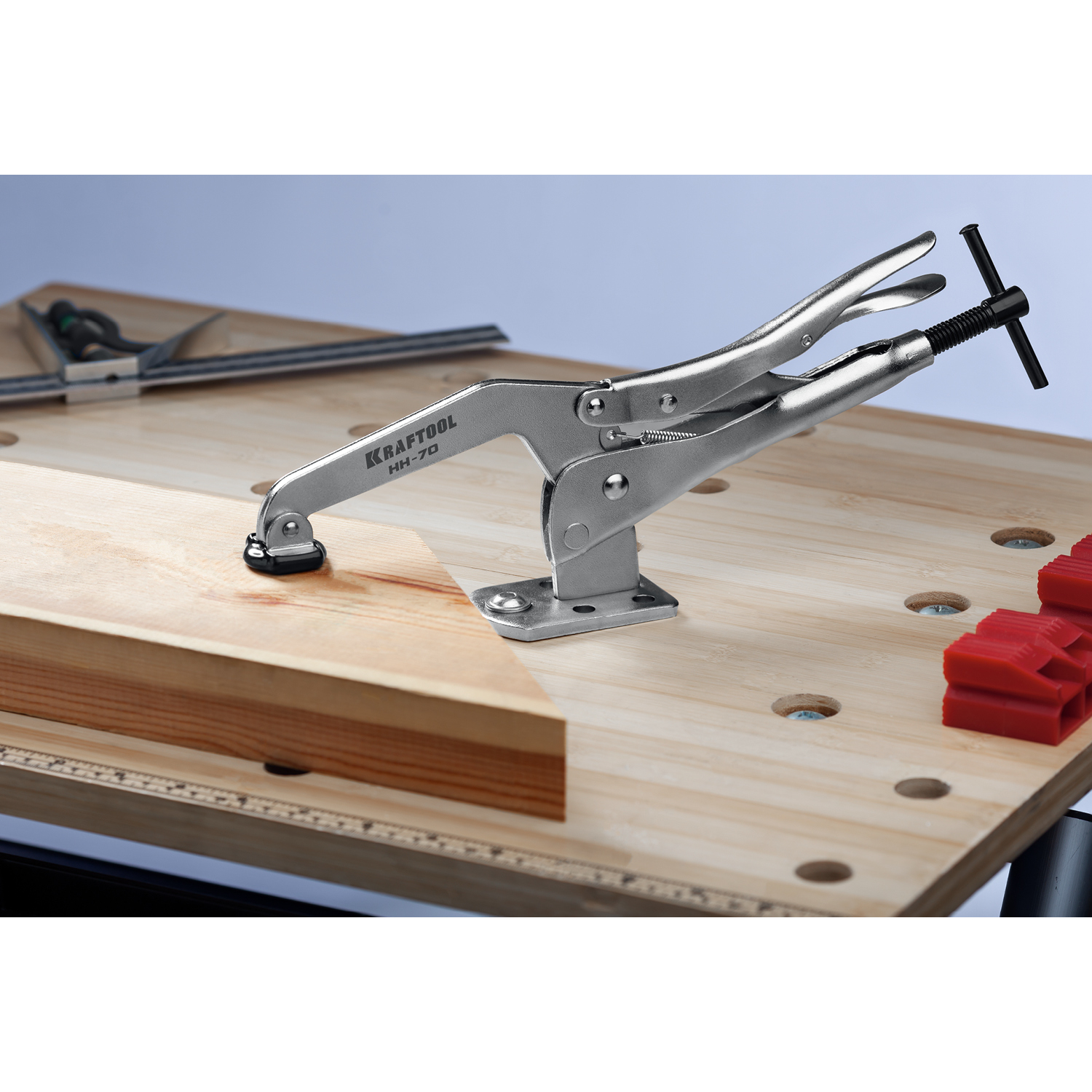 - Широкая площадка с пятью отверстиями для максимально надежной фиксации струбцины на рабочем столе.