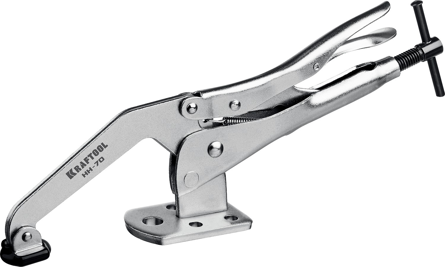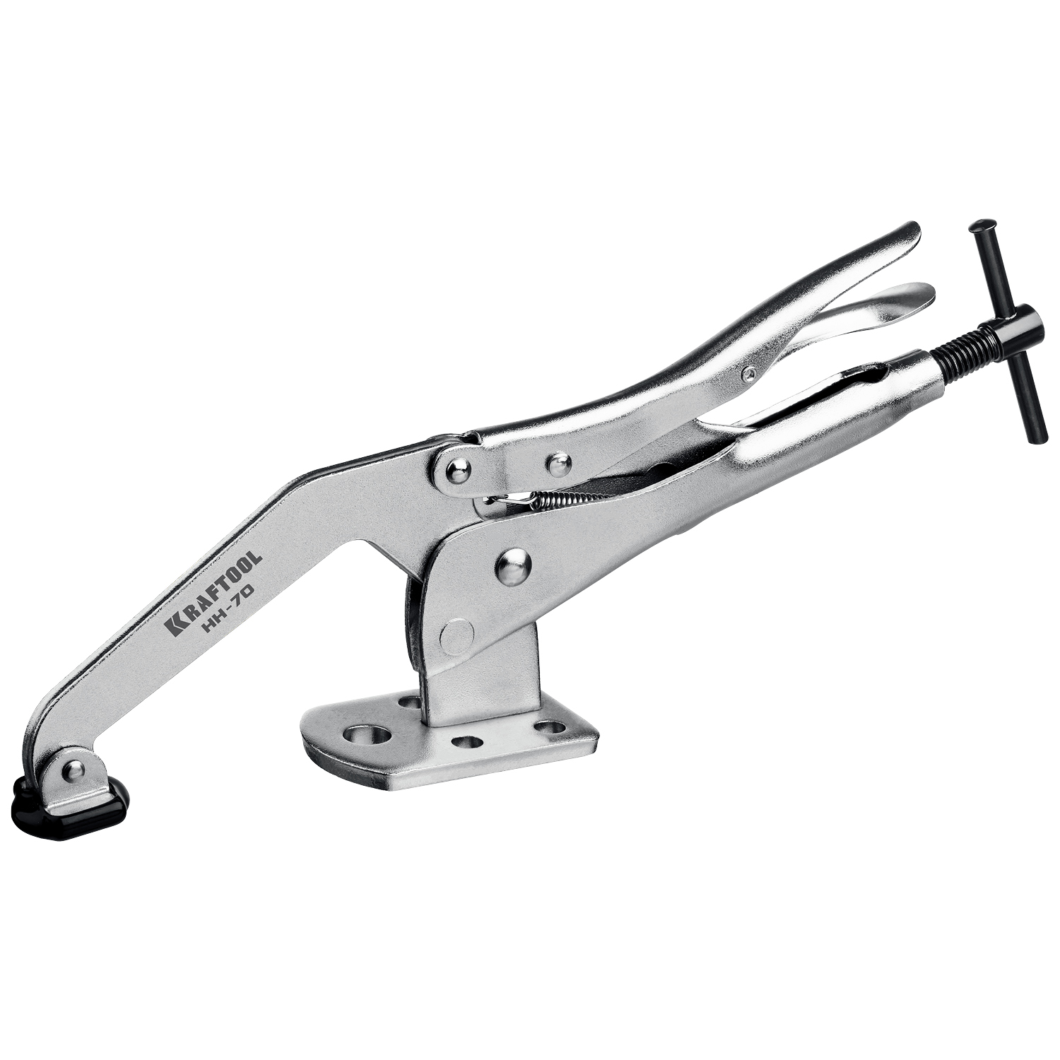 Профессиональная быстрозажимная струбцина KRAFTOOL для сварочных, слесарных, столярных и других работ, где требуется бысрое и надежное крепление заготовок. Усиленная конструкция из прочной хроммолибденовой стали. Цельнокованая прижимная лапка. Прижимное усилие до 400 кгс. Обрезиненный наконечник для бережной фиксации мягких заготовок. Инновационная система мгновенного снятия зажима. Система быстрой настройки толщины зажимаемой детали на всем диапазоне инструмента. Широкая площадка с пятью отверстиями для максимально надежной фиксации струбцины на рабочем столе.