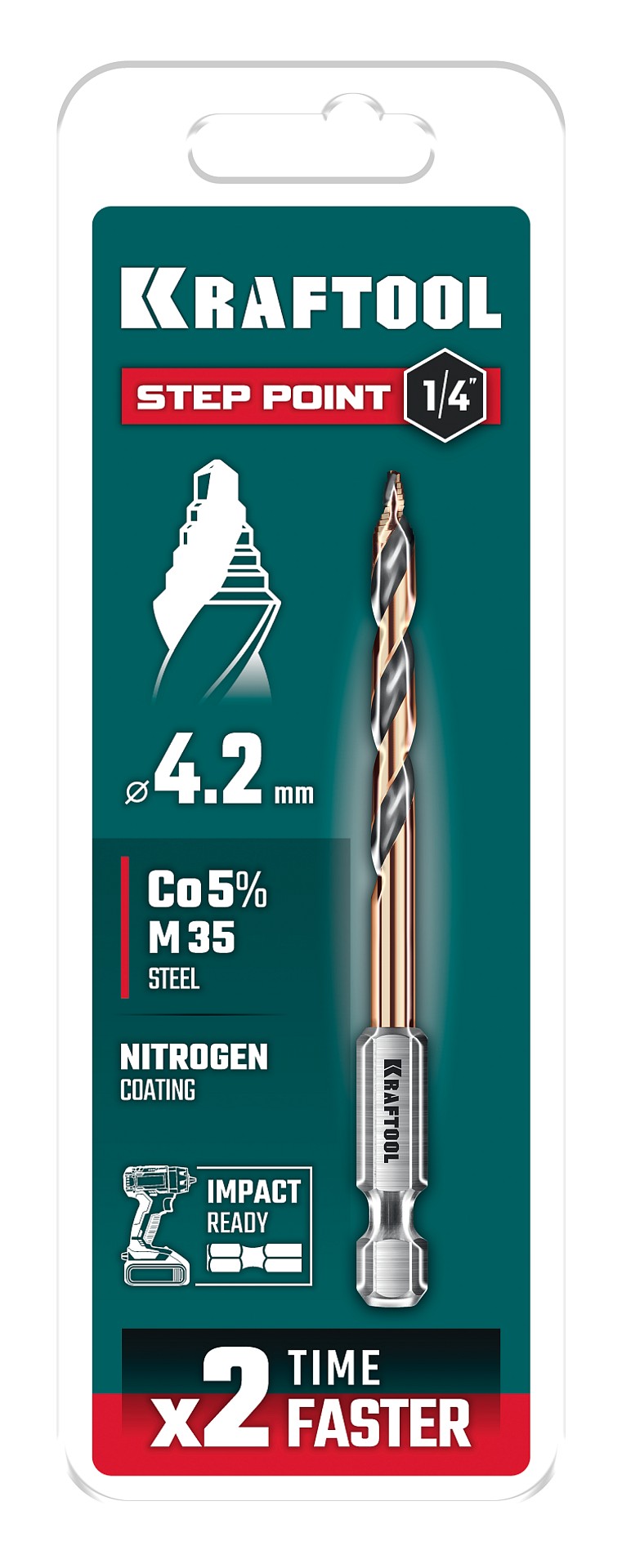 KRAFTOOL STEP POINT, d 4.2 х 83 мм, сверло по металлу для винтовёртов и шуруповертов IMPACT READY (29653-4.2)