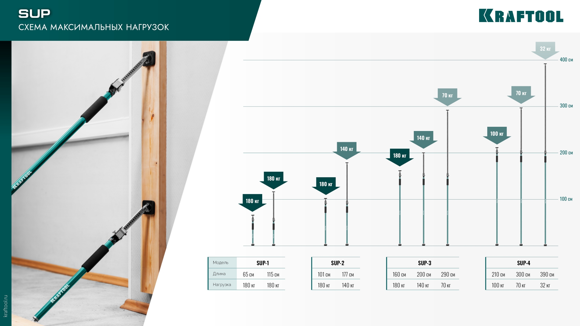 KRAFTOOL SUP-1, 65 - 115 см, телескопический распор (32236)