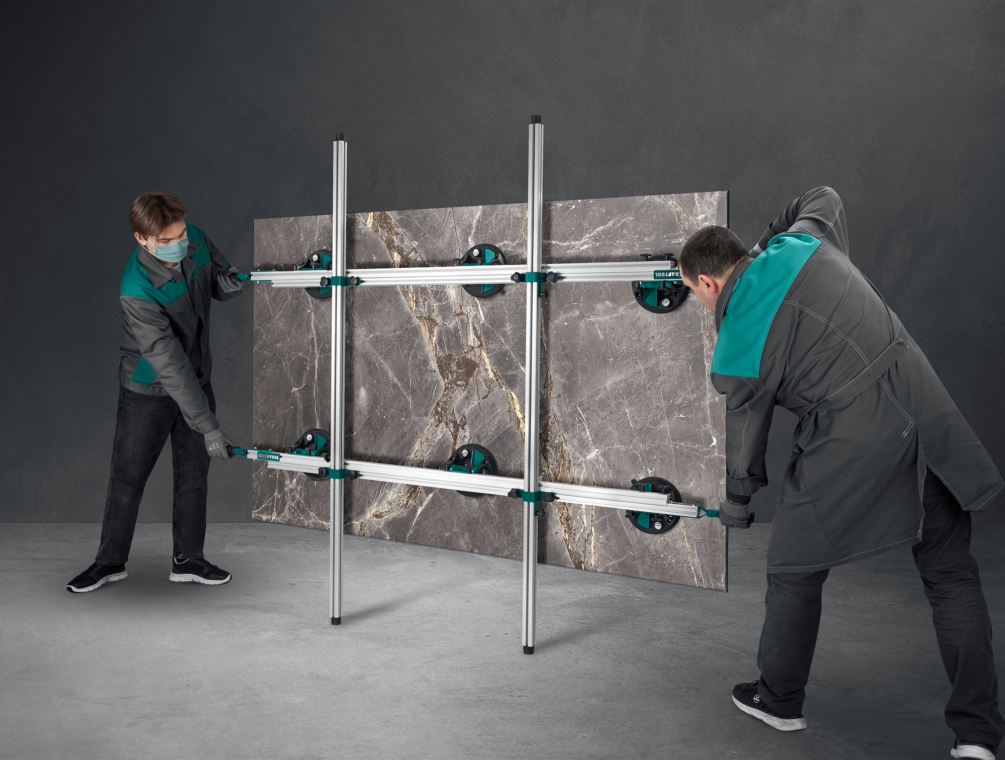 Система переноски позволят аккуратно и безопасно транспортировать плитку весом до 150 кг