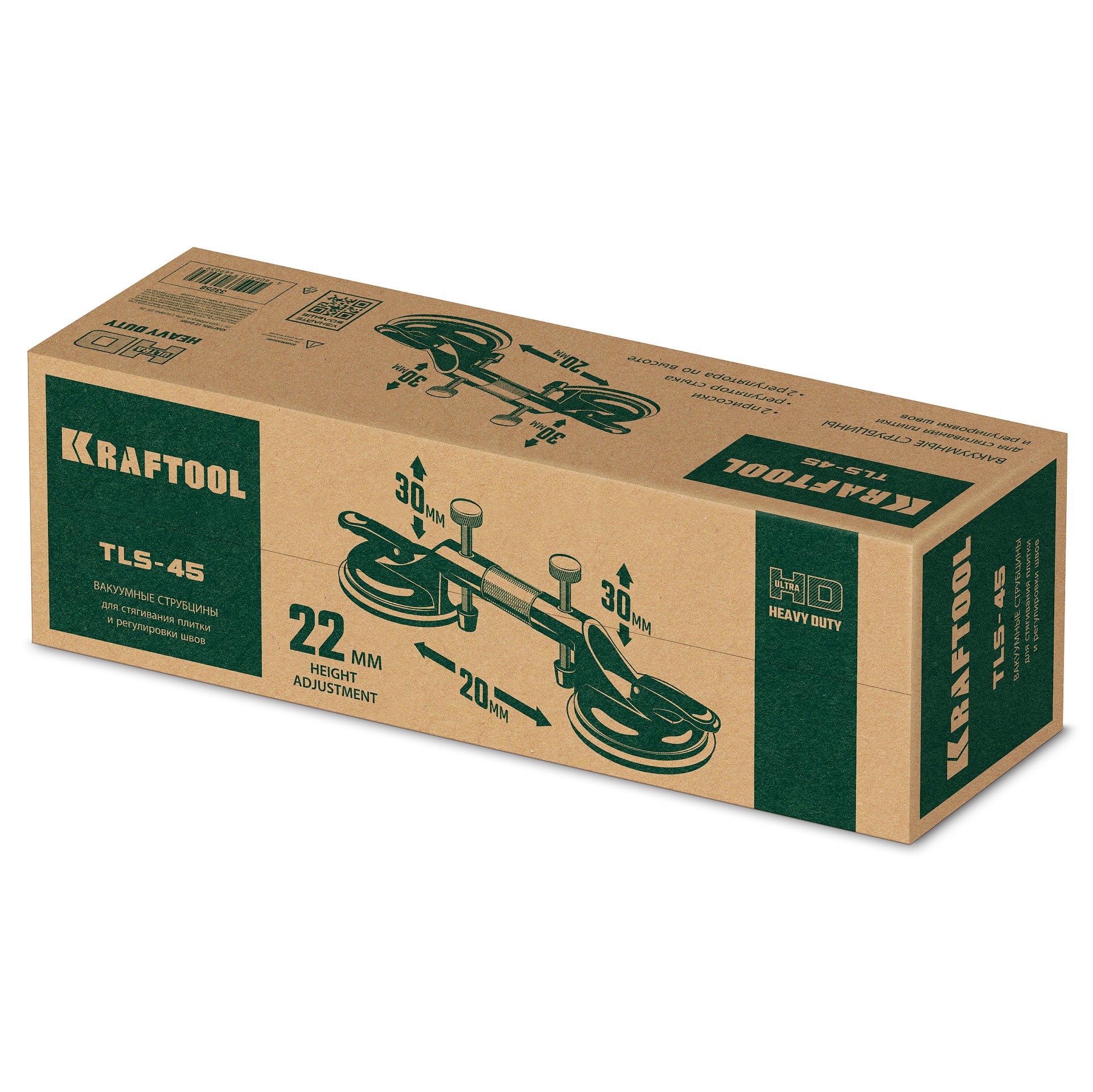 Струбцина с двумя присосками создает нагрузку до 45 кг для выравнивания шва. Регулятор в центре ручки позволяет отрегулировать величину шва между плитками.