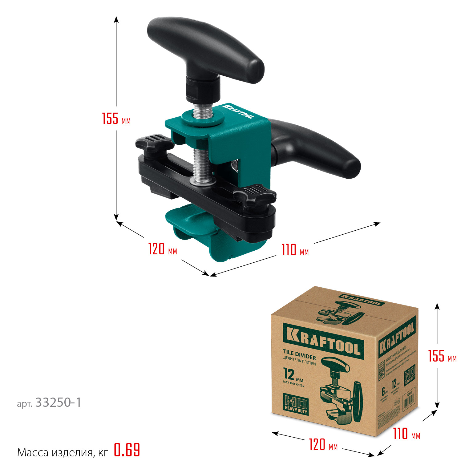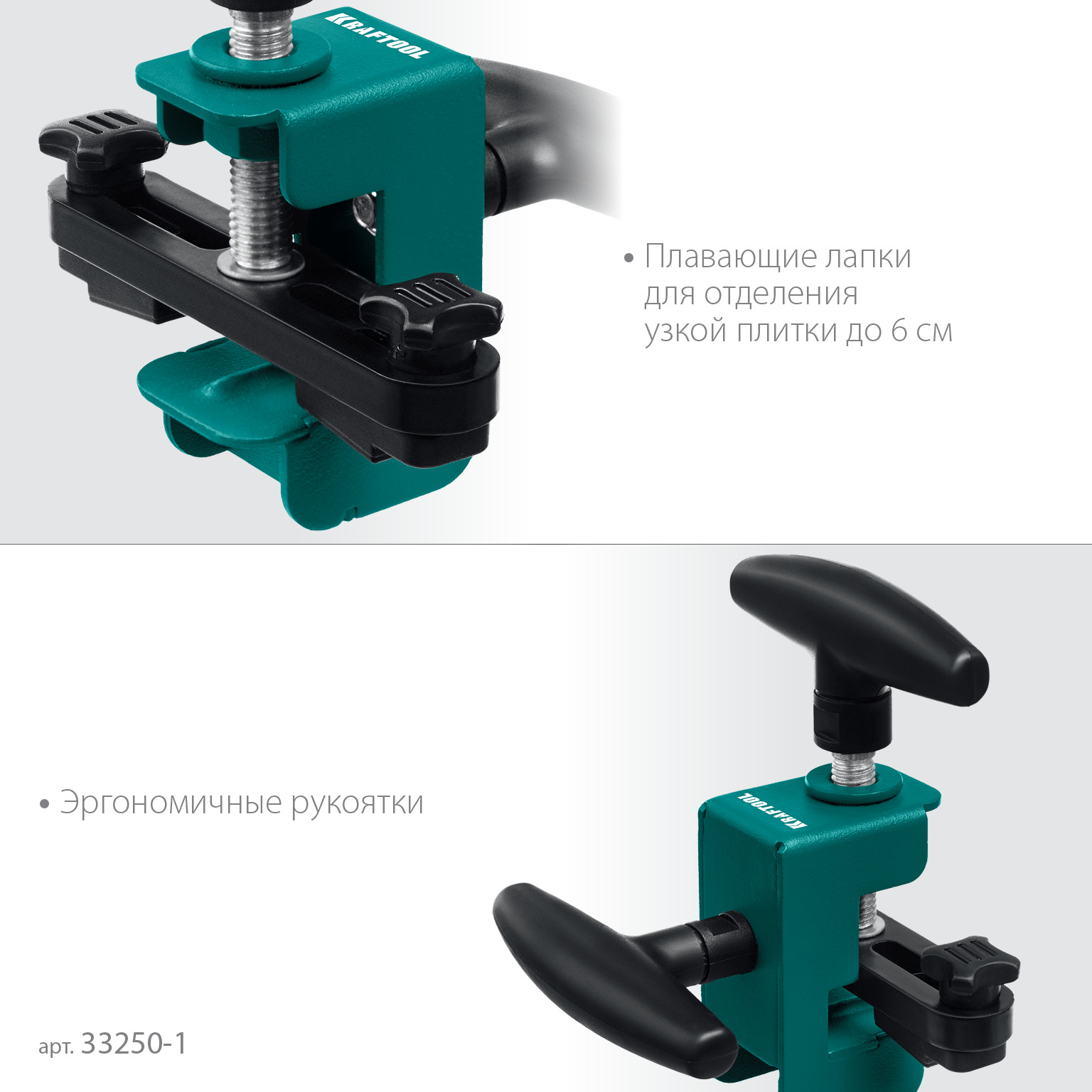 Усиленный делитель плитки из стали толщиной 2 мм с эрогомичными рукоятками позволяет аккуратно и точно разделить плитку толщиной до 15мм. Плавающие лапки помогут в разделении плитки шириной от 6 мм