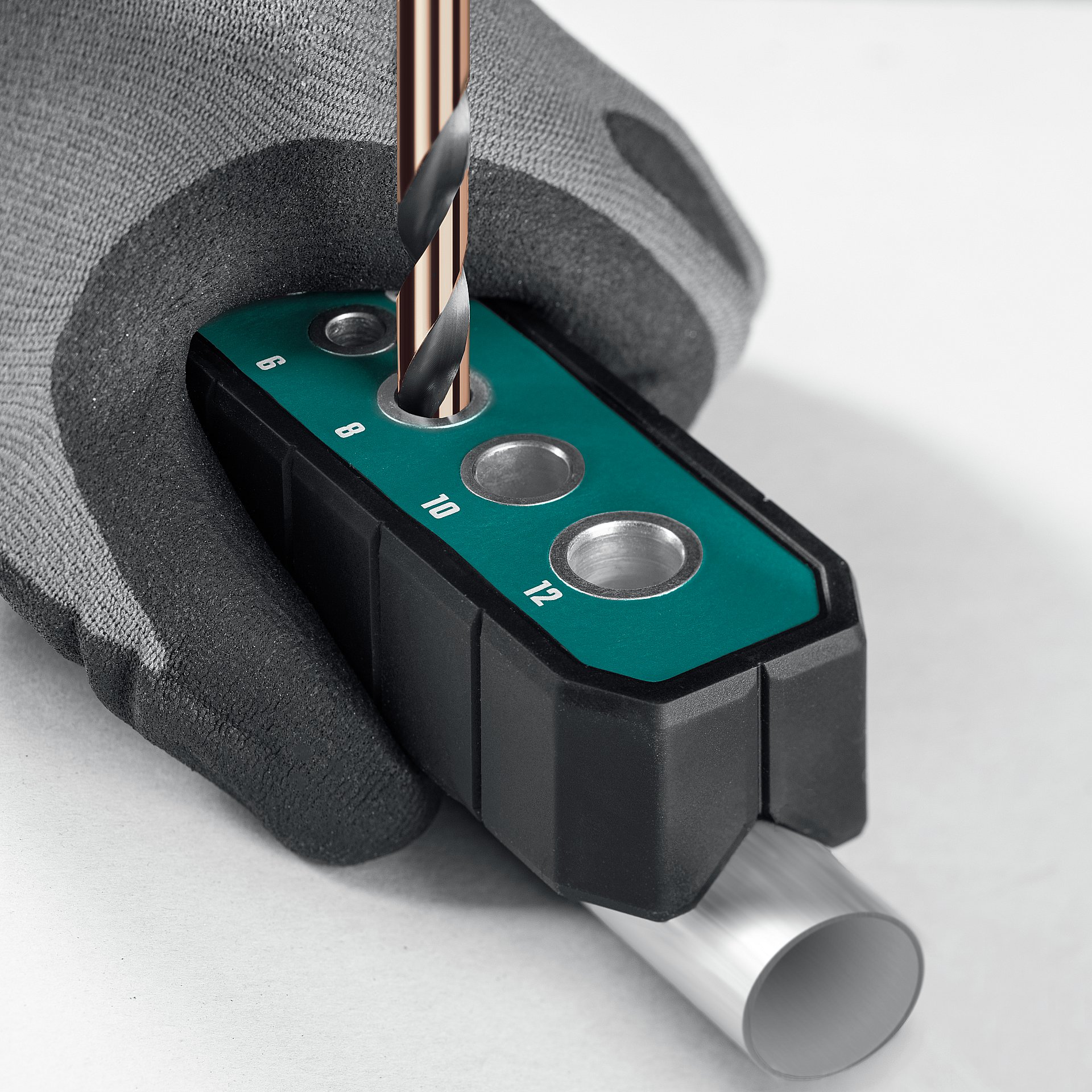 При сверлении на ровной поверхности под углом 90°, в край детали под углом 45°, в цилиндрических деталях.