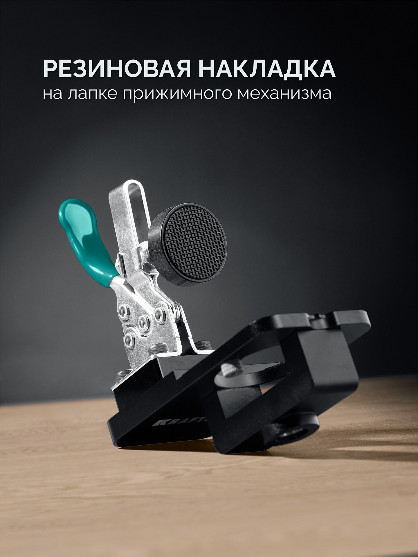 - Резиновая накладка на лапке прижимного механизма не оставляет следов и не повреждает поверхность обрабатываемой детали