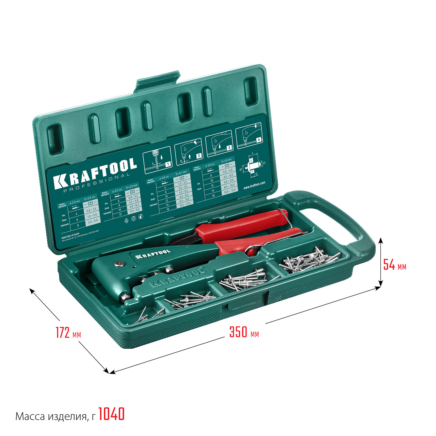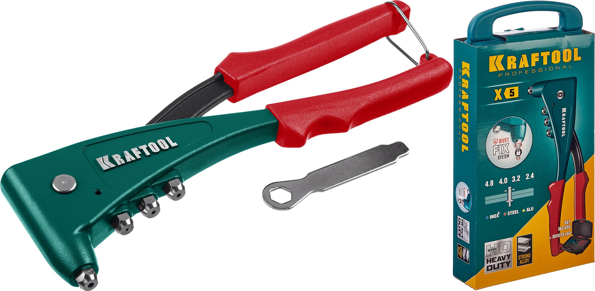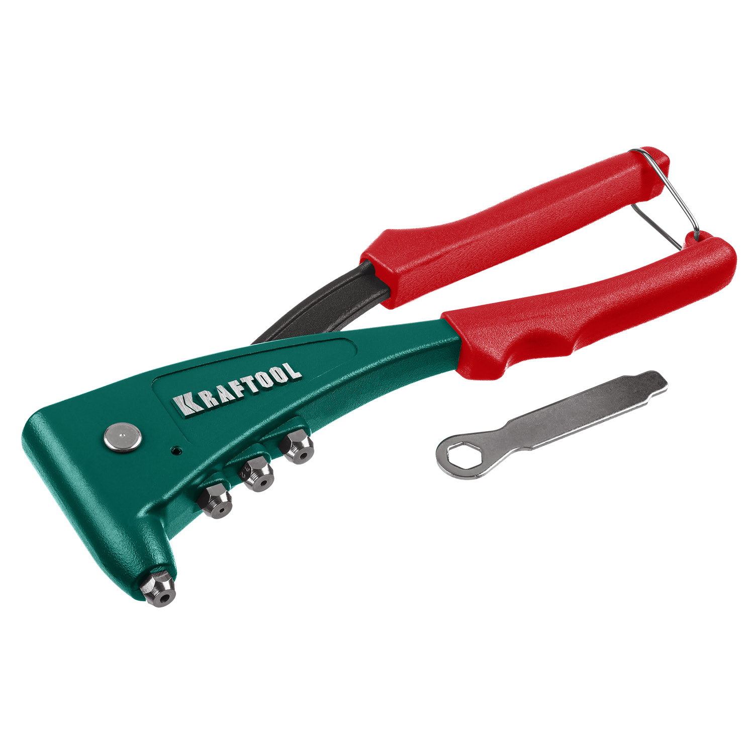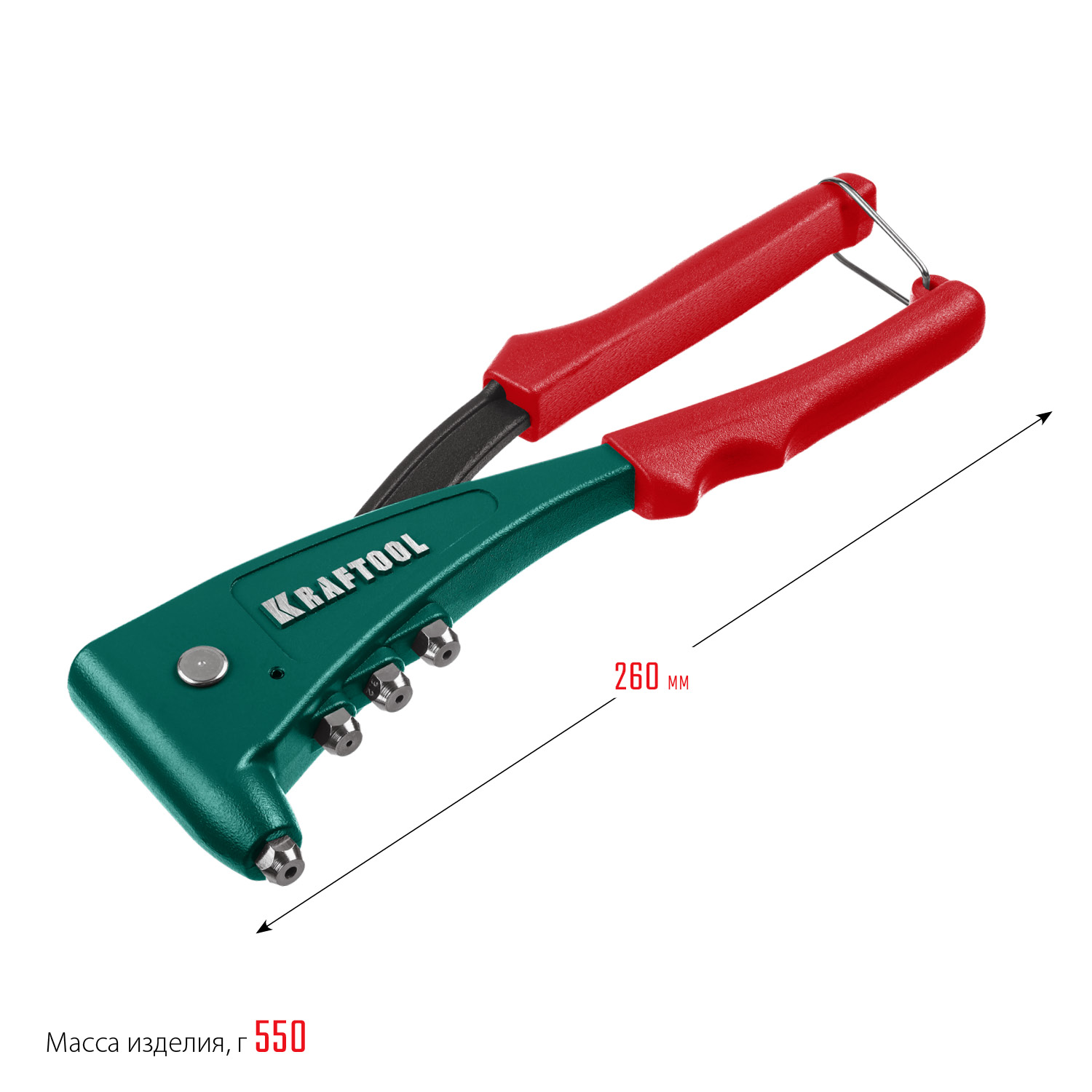 Заклепочник KRAFTOOL выдерживает высокие рабочие нагрузки и предназначен для установки заклепок из алюминия, стали и нержавеющей стали различных диаметров согласно таблице.