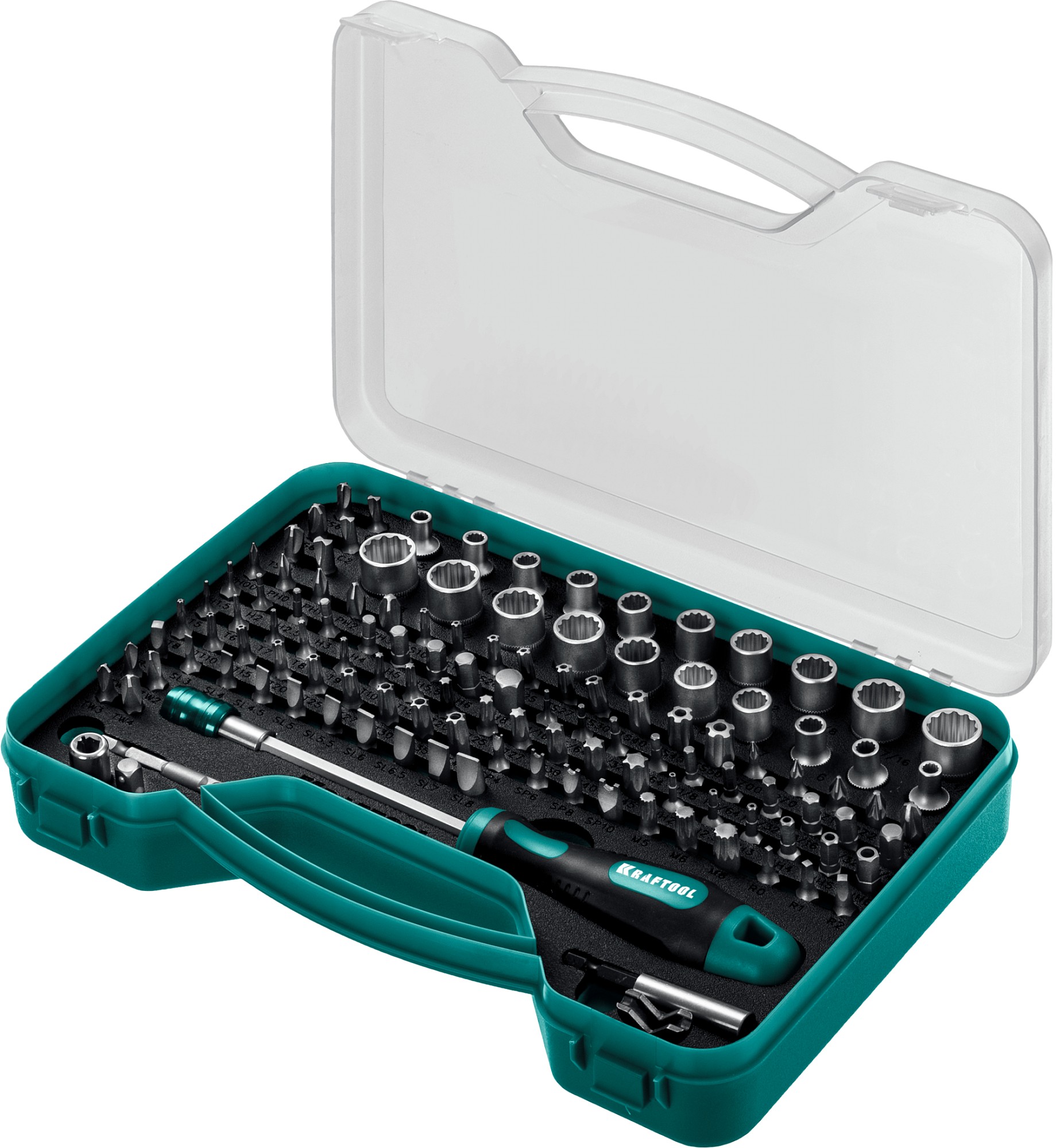 Универсальный набор бит и головок для профессионального применения в комплекте с ручным и электроинструментом. Максимальная комплектация бит и головок для любого вида крепежа.
