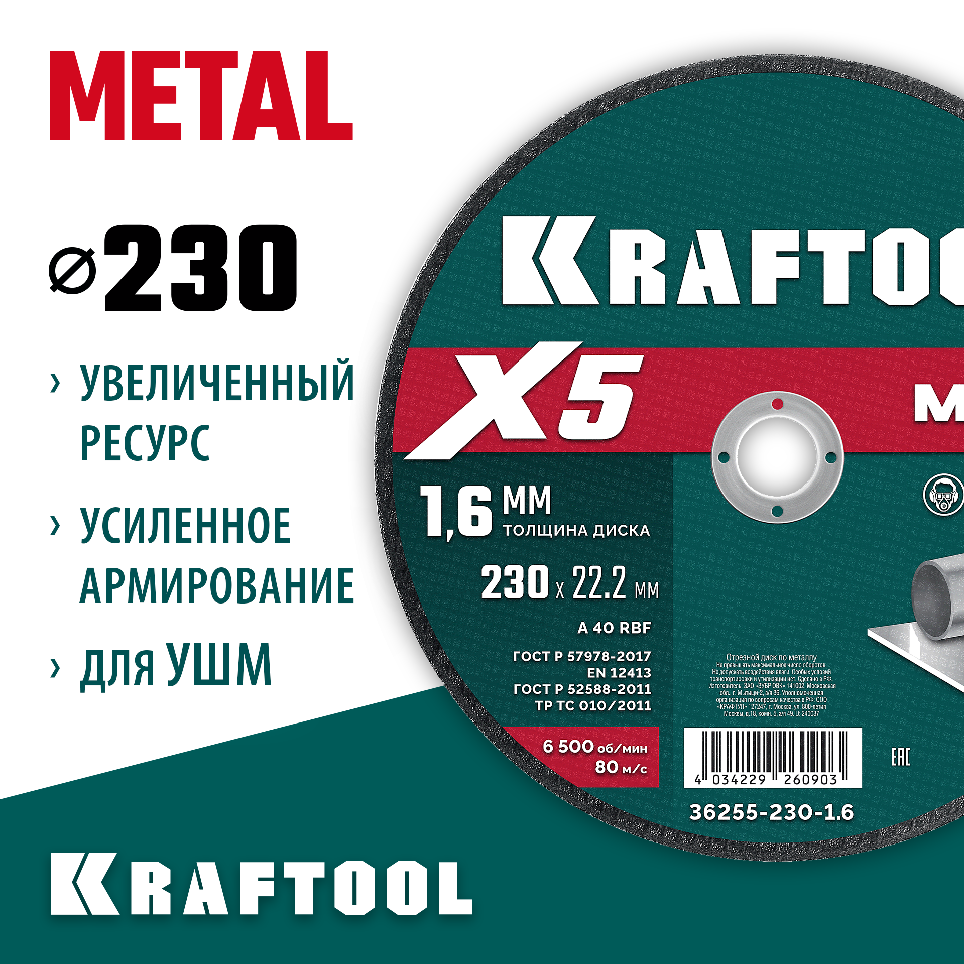 KRAFTOOL X5 Metal 230x1.6 мм по металлу отрезной диск для УШМ (36255-230-1.6)