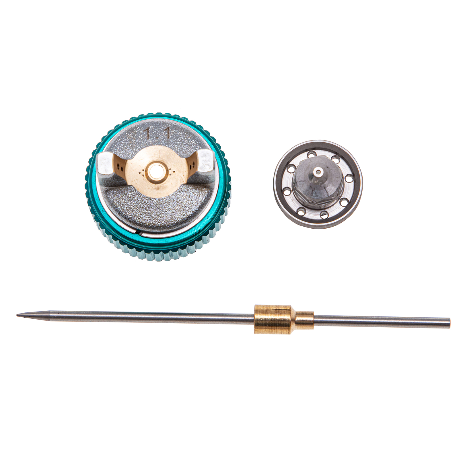 Краскораспылитель с бачком - 1 штШтуцер - 1 штСменное сопло диаметром 1,1 мм - 1 штСменное сопло диаметром 1,3 мм - 1 штИнструкция по эксплуатации - 1 шт