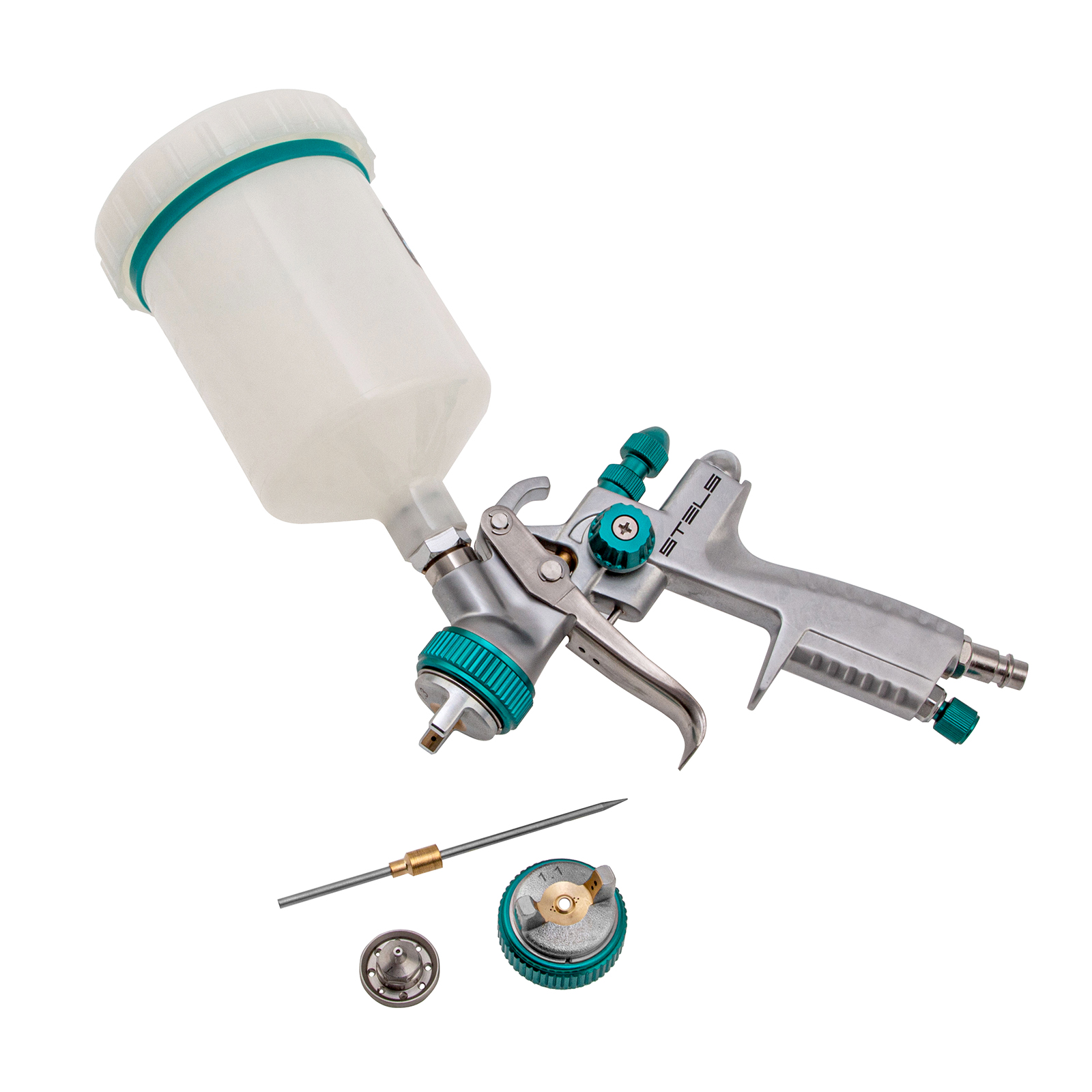 наличие сменного сопла в комплекте_регулировка давления воздуха_регулировка интенсивности распыления_регулировка подачи материала_сменные сопла_регулировка давления